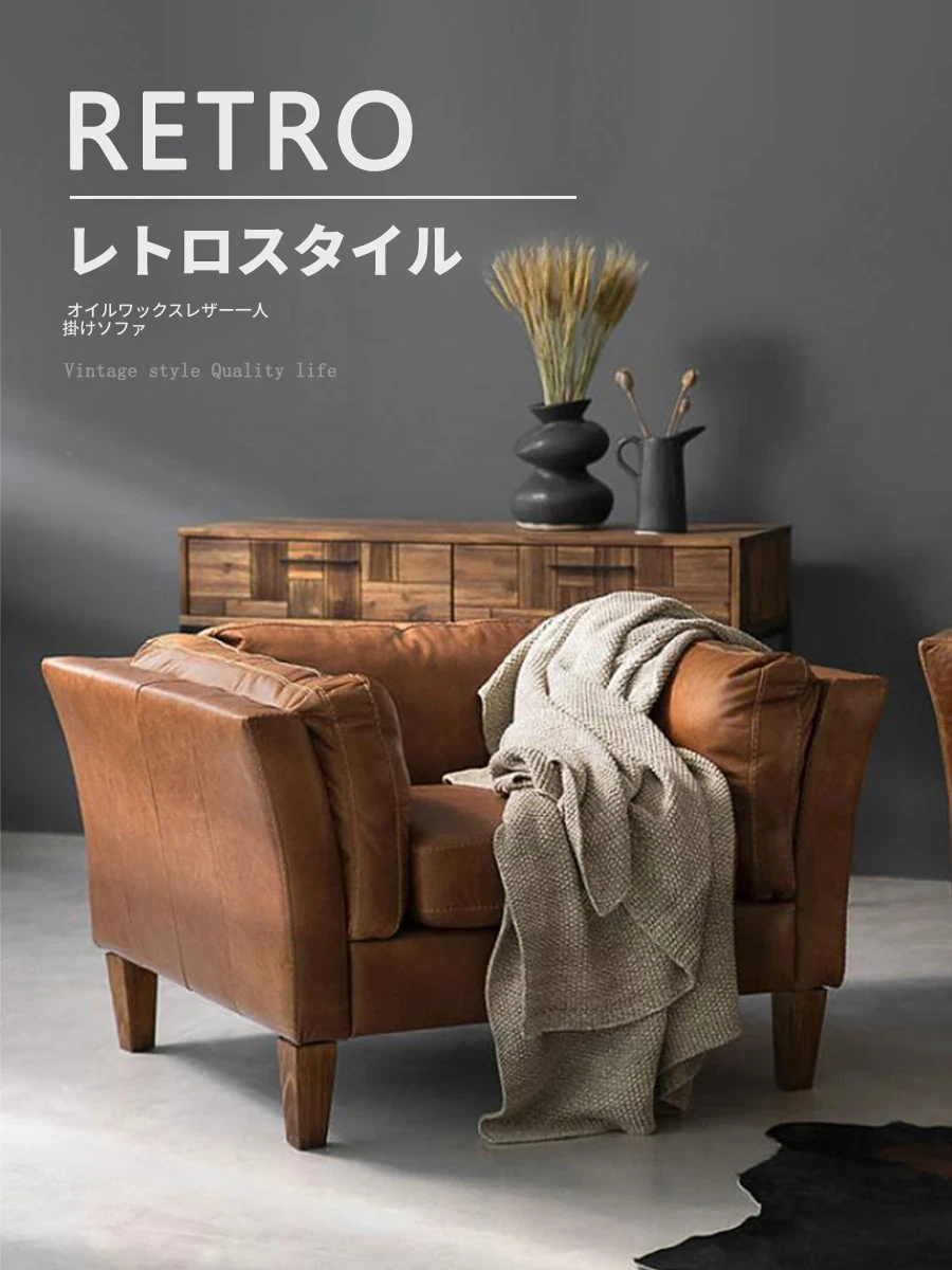 アメリカンレトロ本革トップグレイン牛革使用 中古風オイルワックス牛皮ソファ リビングルーム・シガーバー・ホテル・民宿に最適なラグジュアリーソファ!高級感溢れるデザインで、居心地の良い空間を演出します。