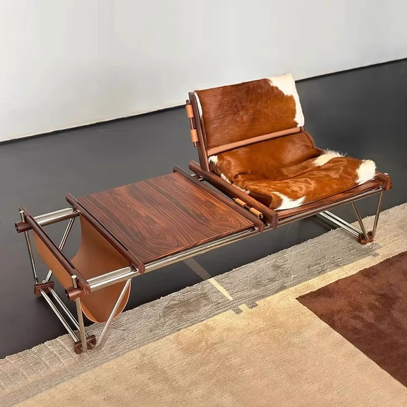北欧スタイルの一人掛けソファ、ヴィンテージデザインの無垢材製!リラックスできる真皮のジャージー島椅子で、居心地の良い寝室やリビングに最適。デザイナーのこだわりが光る一品!
