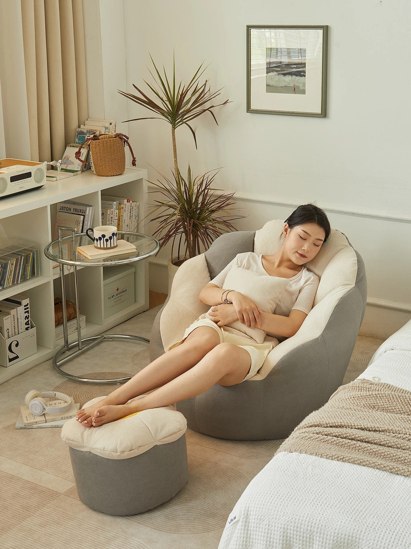 リラックス豆袋ソファ|人気の居心地抜群なデザイン!リビング・寝室・和室・バルコニーにぴったり!横になれる&寝られる小さなスツールで、あなたのくつろぎスペースを演出します!