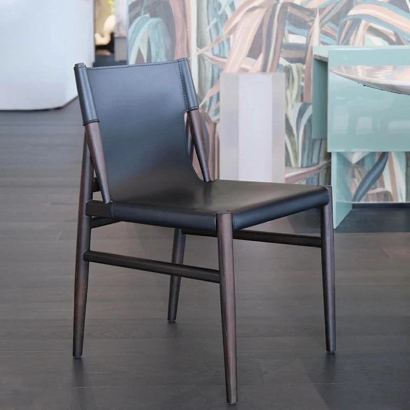 イタリアンミニマリストデザインのサドルレザー製ダイニングチェア、ステンレススチールフレーム。北欧スタイルの洗練された軽奢ダイニングチェアで、ロコブランデザインが魅力的。家庭用としても最適です!
