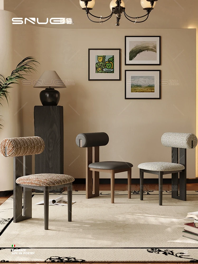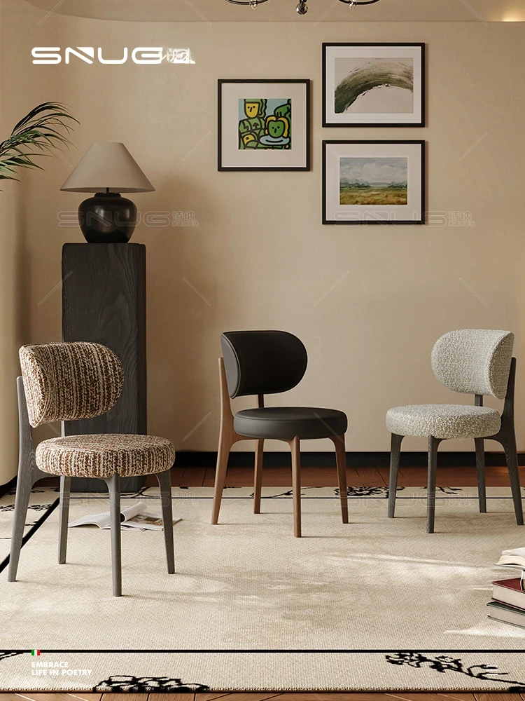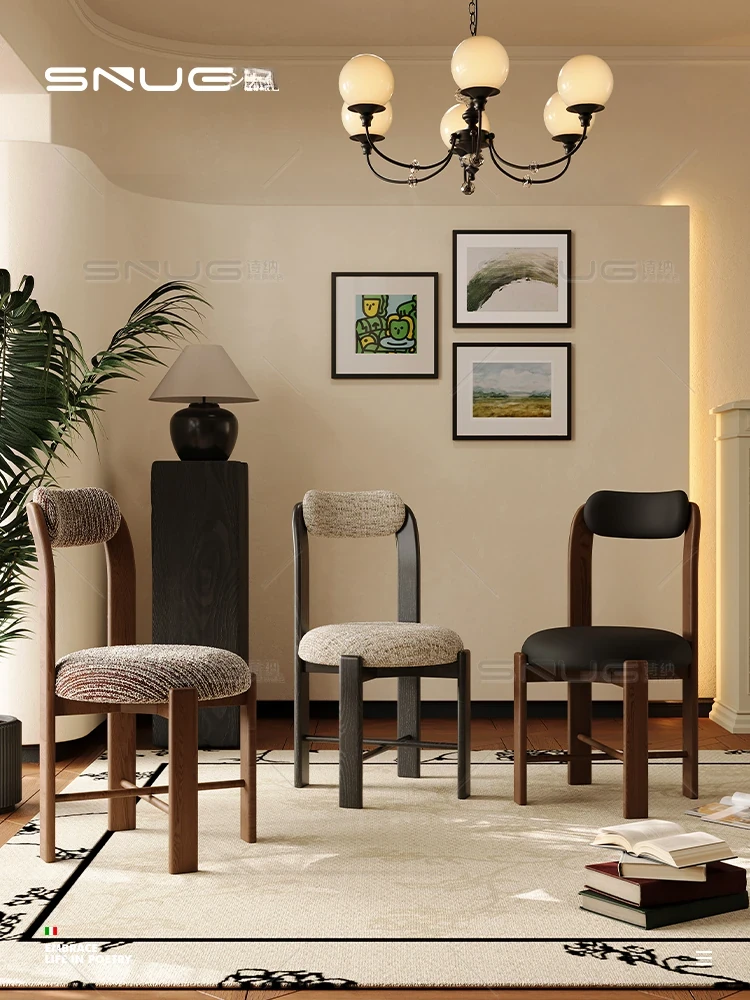 新中式ホワイトアッシュ材ダイニングチェア|北欧ミニマルデザインの中古風ダイニングテーブルセット|シンプルで現代的なデザイナーソフトバックチェア、心地よい食卓を演出します!