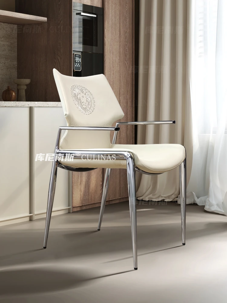 2025年新作!本革製ダイニングチェア - 家庭用イタリアンラグジュアリー、上質な背もたれ付き、トップグレードの牛革使用!デザイン性と快適性を兼ね備えた、特別な食卓を演出します。