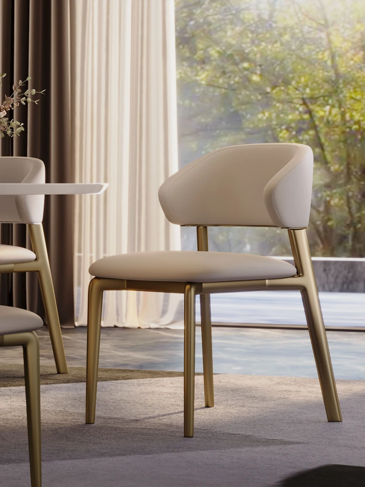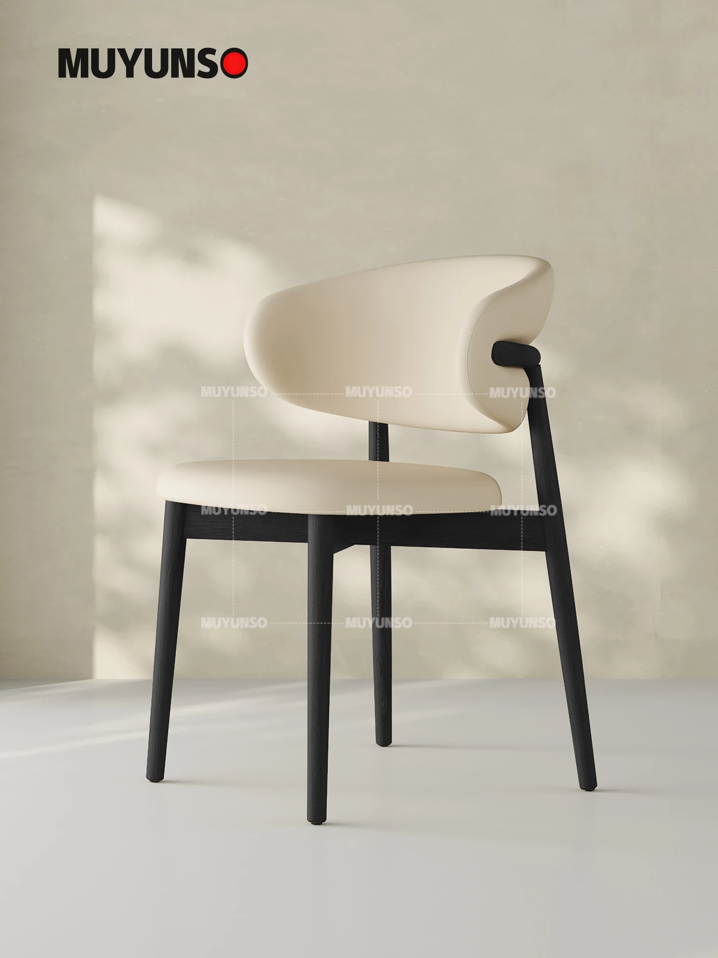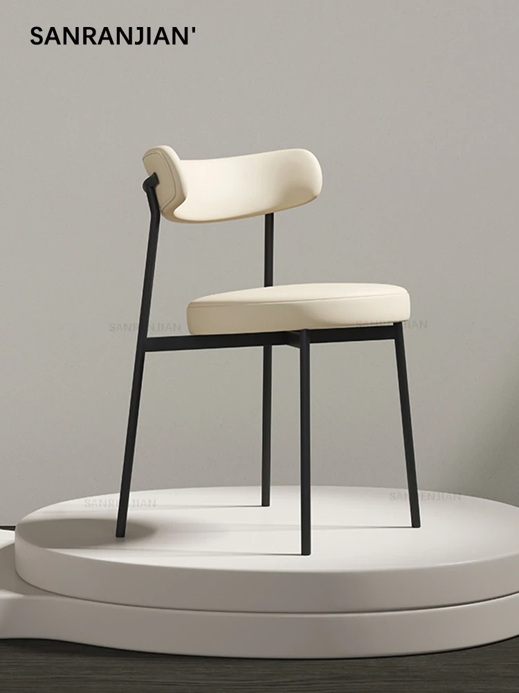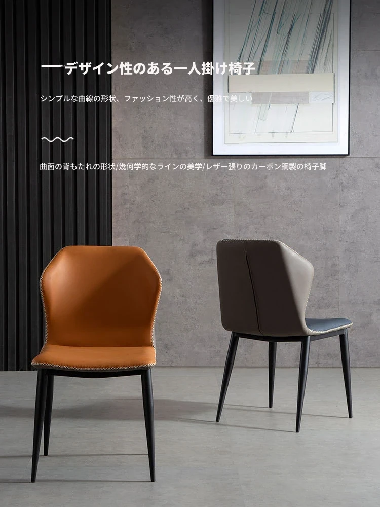洗練された北欧風の軽奢レストランチェア|シンプルでモダンなデザイン|家庭やオフィスに最適な背もたれ付き|高級感溢れるレザー素材|快適な座り心地で商談や食事を優雅に演出!