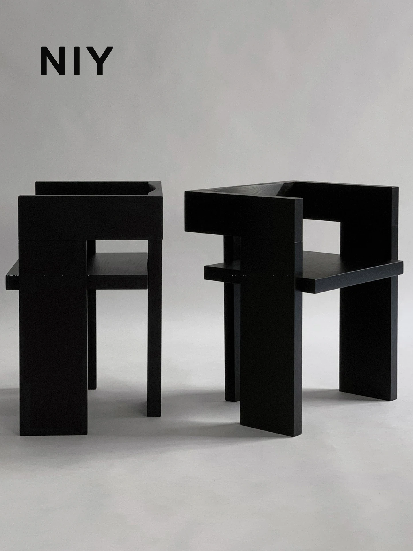 NIY幾何デザインの個性的な木製ダイニングチェア | モダンなロースツールと一人掛け椅子 | ヴィンテージ感漂うユニークな長椅子 | おしゃれなインテリアにぴったり!