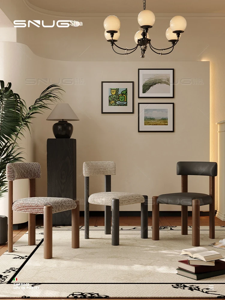 Nordic Solid Wood Dining Chair with Soft Backrest - Vintage Mid-Century Style, Perfect for Home, Study, and Meeting Spaces - Minimalist Design for Comfort and Elegance