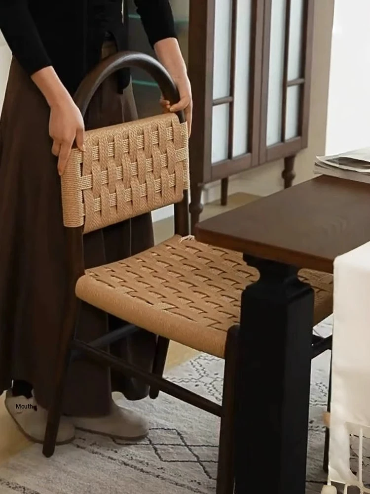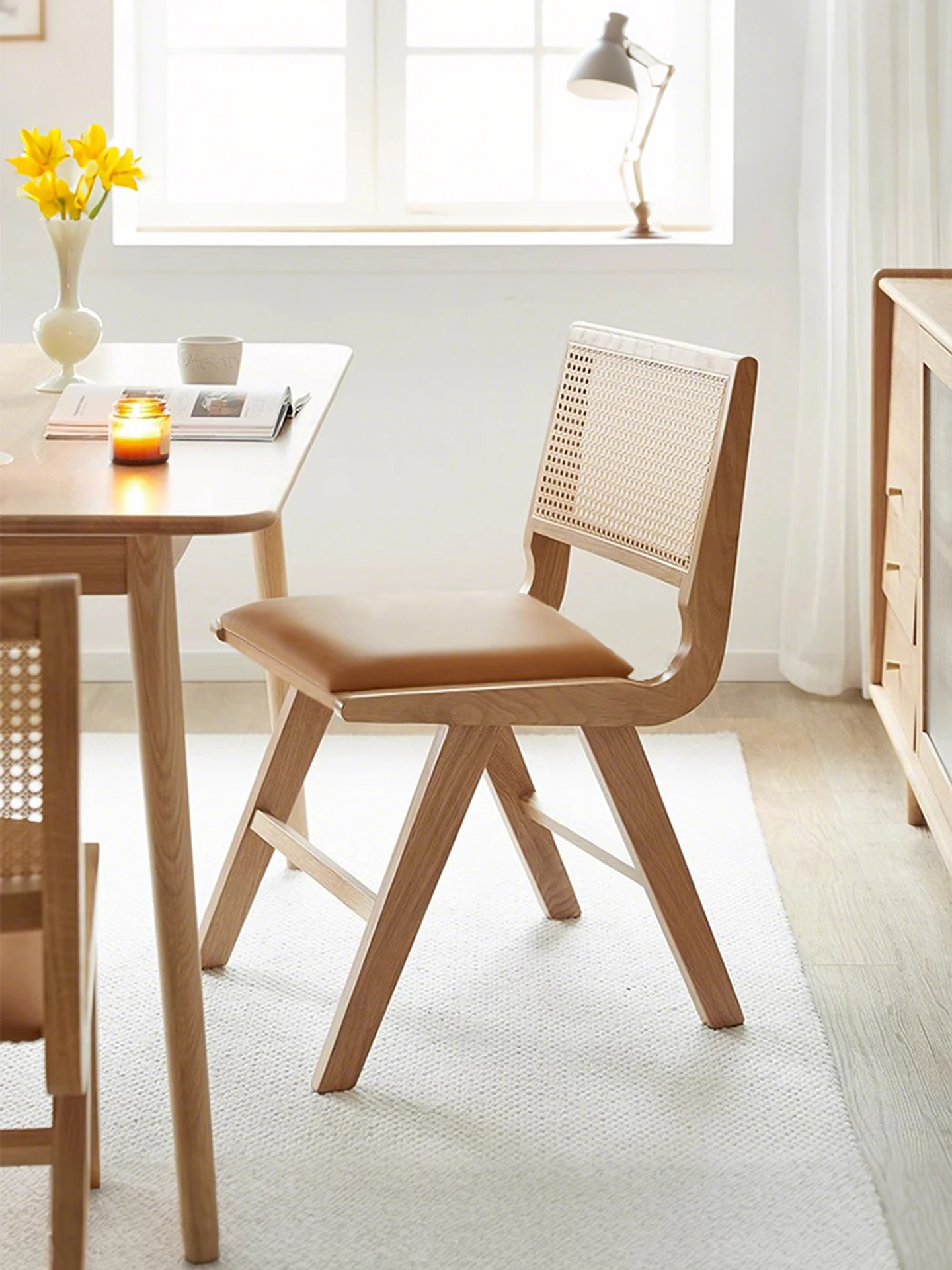 Nordic Solid Wood Rattan Dining Chair - Minimalist Japanese Style, Armless, Perfect for Small Spaces, Ideal for Home Use, Vintage-Inspired Backrest, Stylish and Comfortable for Your Dining Room