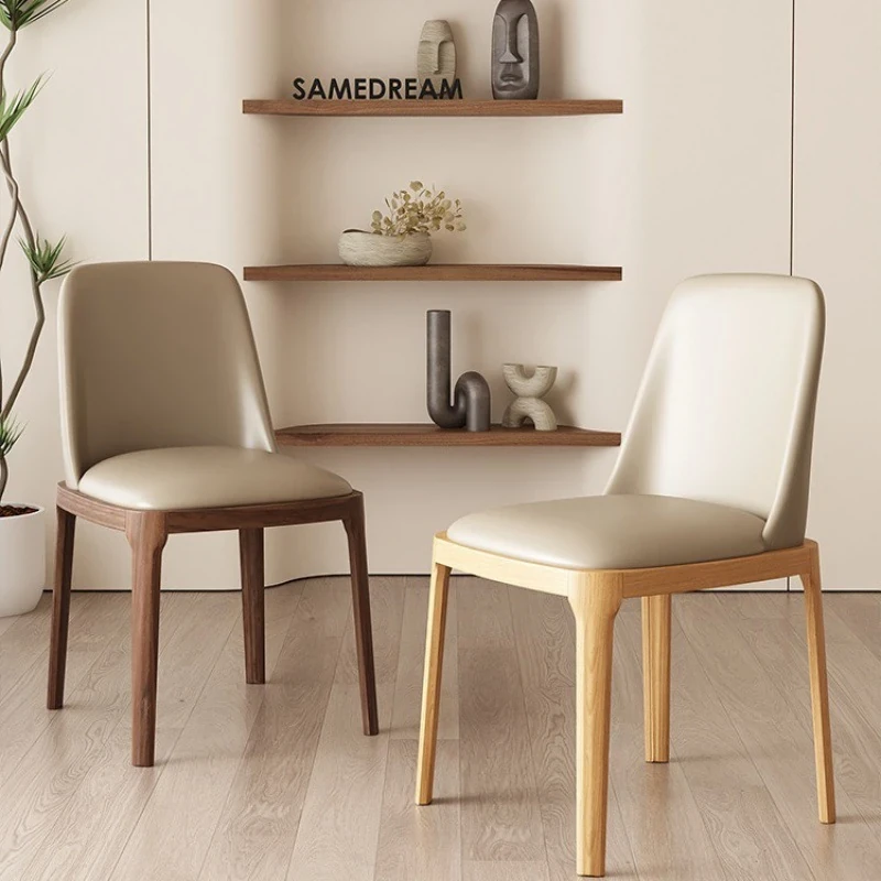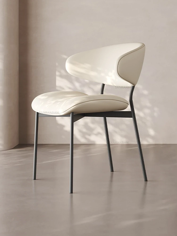 Elegant Italian Minimalist Dining Chair - Modern Leather Seat for Home, Nordic Luxury Design, Soft Upholstered Backrest, Perfect for Stylish Dining Spaces