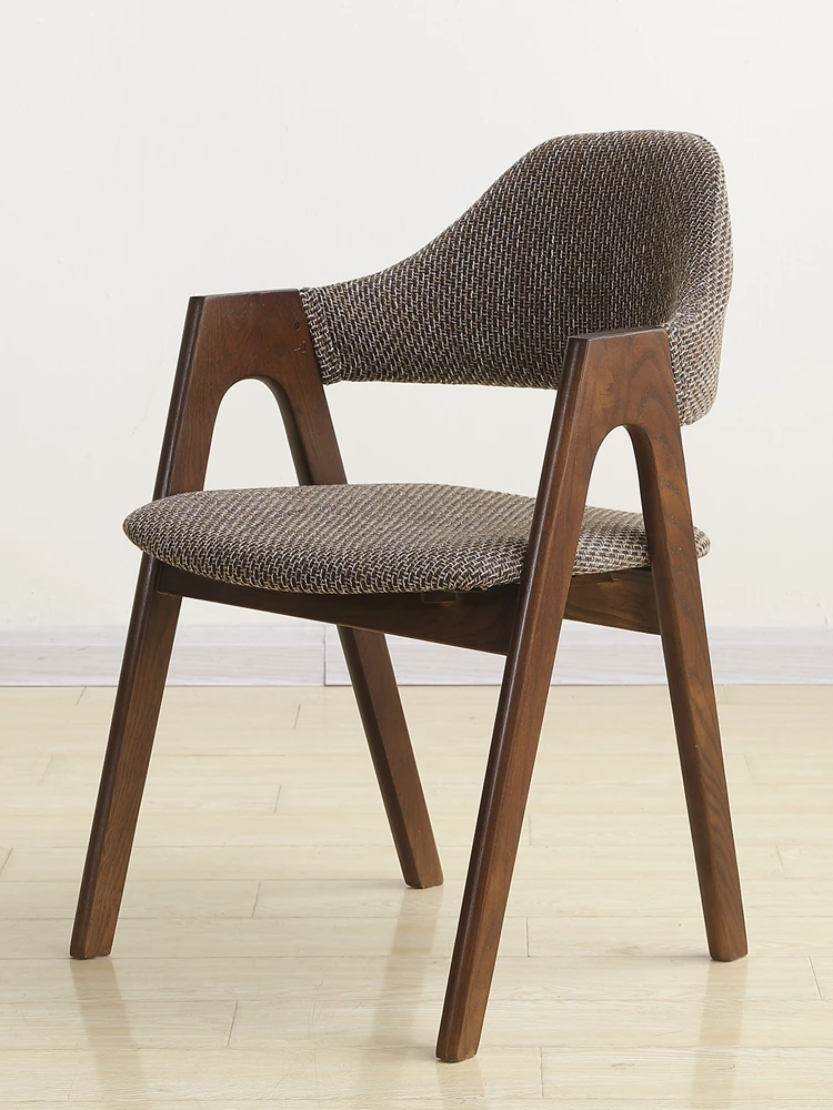 Modern Nordic Solid Wood A-Frame Dining Chair with Upholstered Fabric - Stylish and Minimalist Lounge Chair for Restaurants and Study Desks