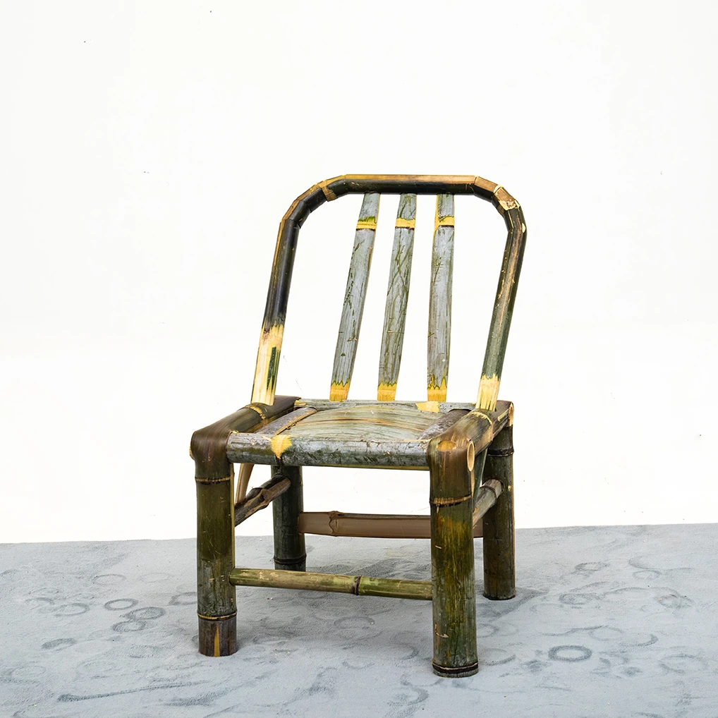 Vintage Handwoven Bamboo Chair with Backrest - Classic High Stool for Adults - Perfect for Tea Time and Outdoor Relaxation - Stylish Wicker Patio Seat