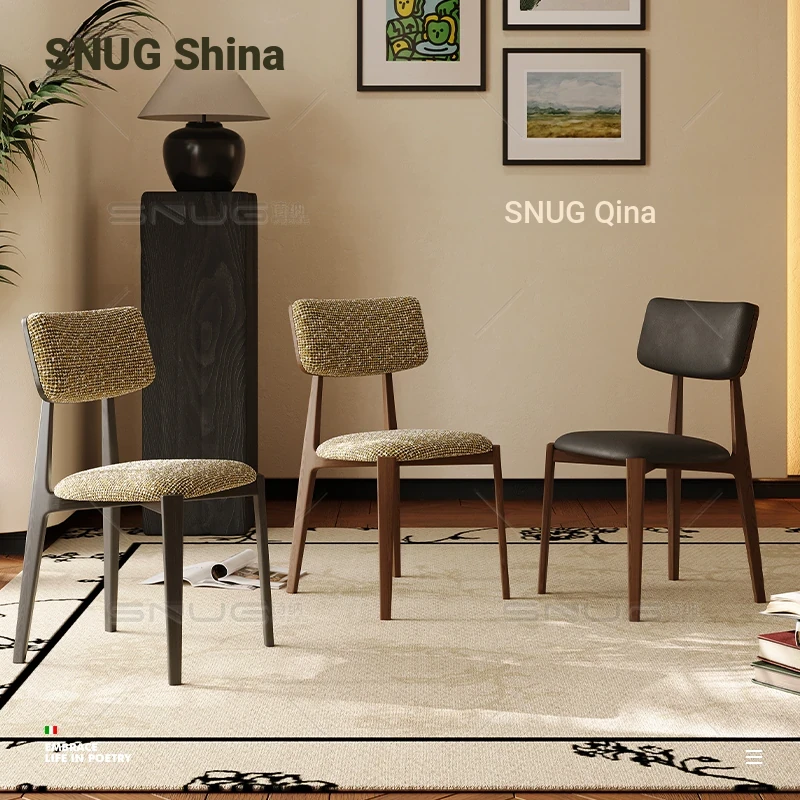 Modern Minimalist Dining Chair - Solid Wood & Upholstered Luxury Stool with Backrest for Home, Office Meetings, and Restaurants