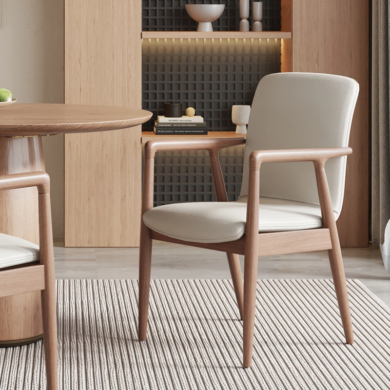 Nordic Solid Wood Dining Chair with Armrests - Elegant President's Chair for Meetings, Cozy Single Sofa Chair, Perfect for Tea Time and Study Desks - Stylish Addition to Your Home Décor