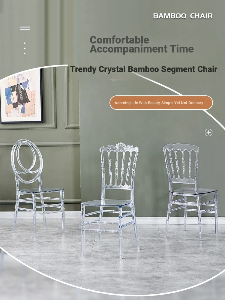 Crystal Clear Banquet Chairs for Hotels - Elegant Transparent Plastic Napoleon and Phoenix Style Chairs for Outdoor Weddings and Training Events
