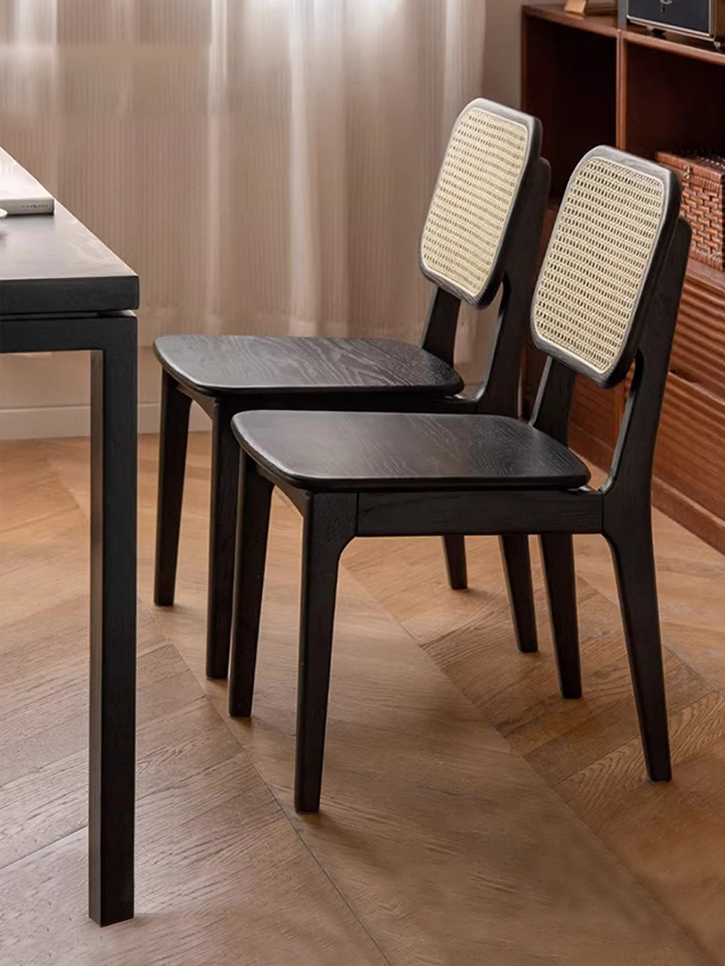Nordic Vintage Solid Wood Dining Chair - Minimalist Designer Style with High-End Rattan Cushioned Backrest for Home Use