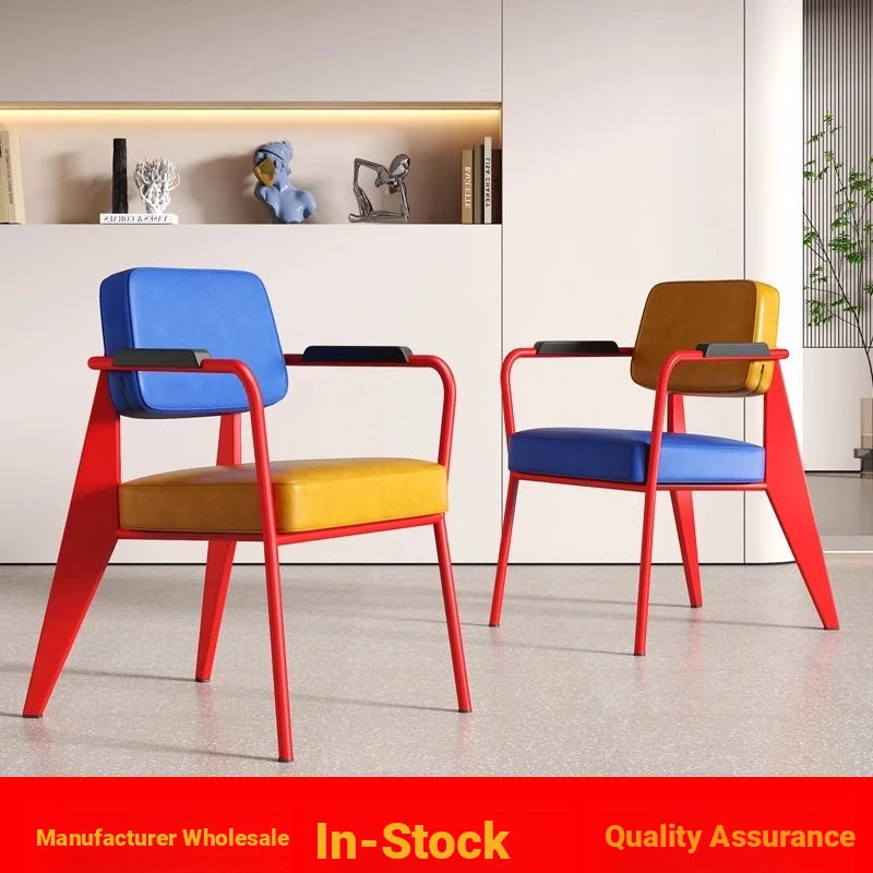 Nordic Modern Minimalist Iron Backrest Dining Chair - Stylish and Comfortable for Home Use, Perfect for Dining Rooms, Meetings, and Cat-Friendly Spaces.