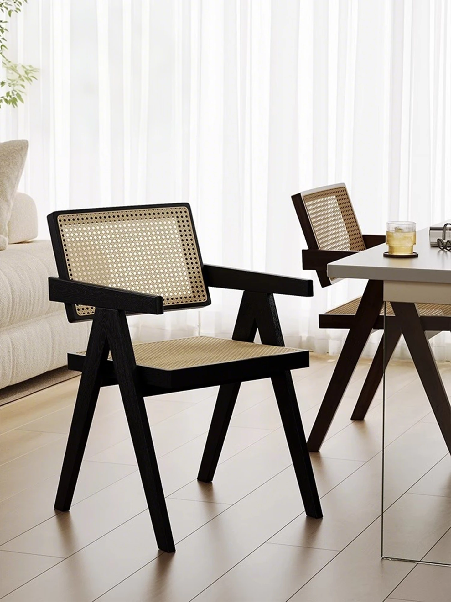 Chandigarh Nordic Solid Wood Rattan Chair - Stylish Wabi-Sabi Backrest Dining and Tea Chair for Home Use, Perfect for Modern Interiors