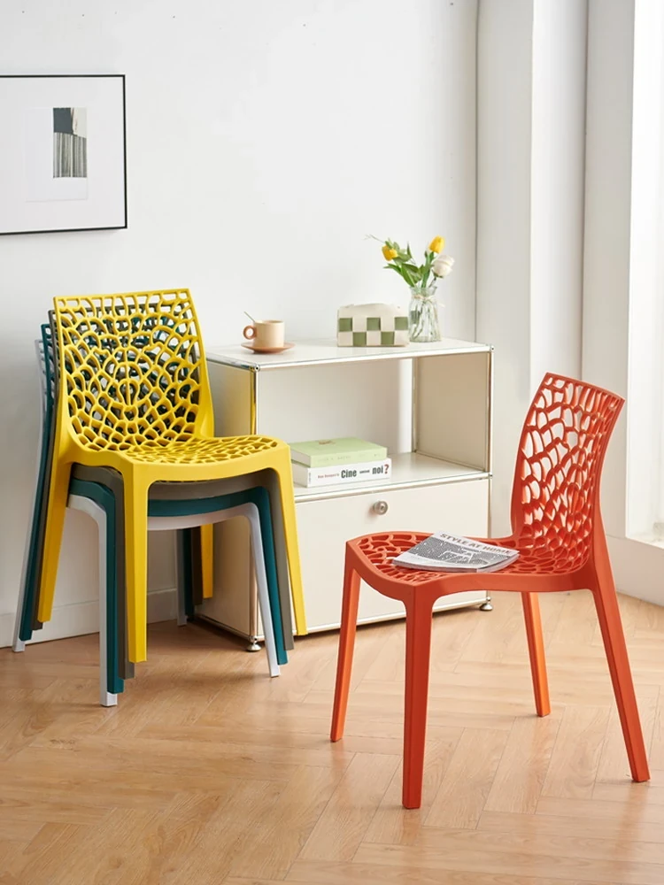 Stylish Stackable Plastic Dining Chair with Thickened Backrest - Modern Minimalist Home Use Nordic Dining Stool for Restaurants and Living Spaces