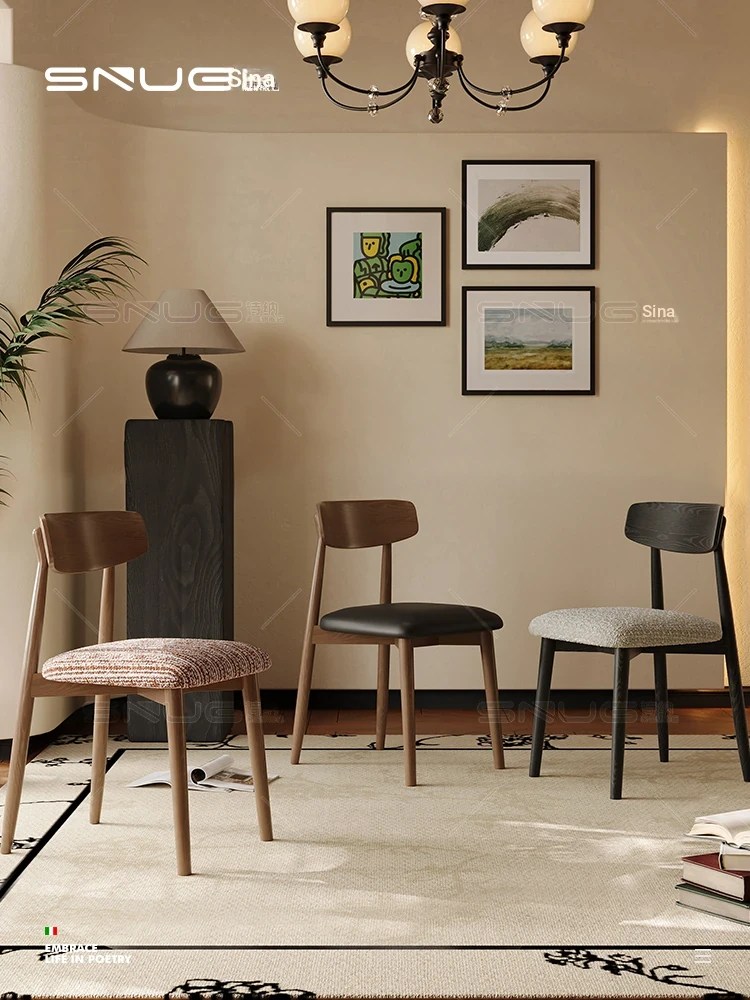 Minimalist Modern Solid Wood Dining Chair - Scandinavian Style Designer Soft Upholstered Backrest for Home Use, Elegant Mid-Century Design, Perfect for Dining Tables.
