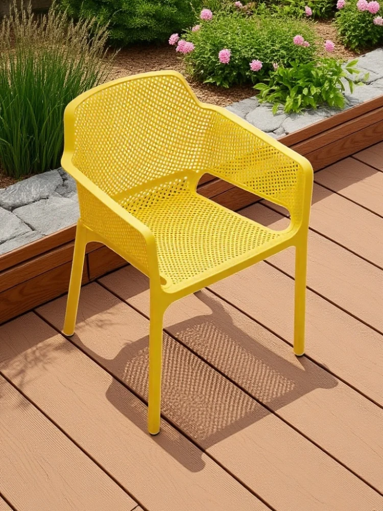 Stylish Hollow Plastic Dining Chair with Armrests - Durable Indoor and Outdoor Balcony Seating, Thickened Nordic Design for Home and Café Use