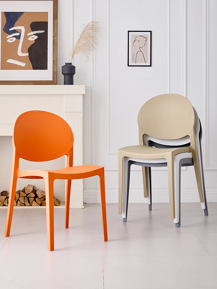 Modern Stackable Thickened Plastic Dining Chair - Stylish Home and Restaurant Use, Comfortable Backrest, Durable and Practical for Everyday Dining Needs
