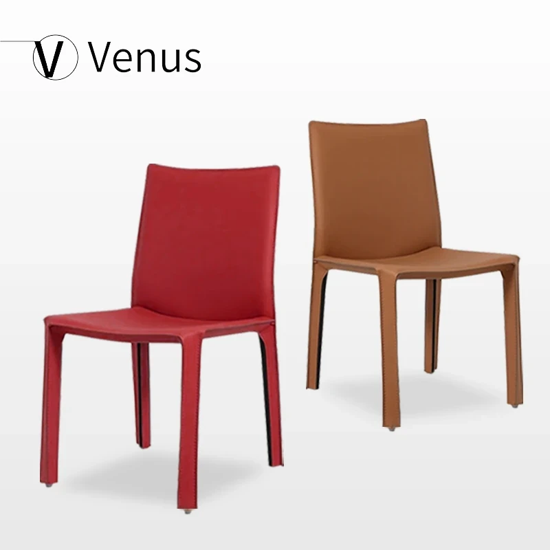 2025 New Stainless Steel Chair with Luxurious Genuine Leather, Minimalist Italian Design for Dining - Perfect for Small Homes and Elegant Dining Spaces