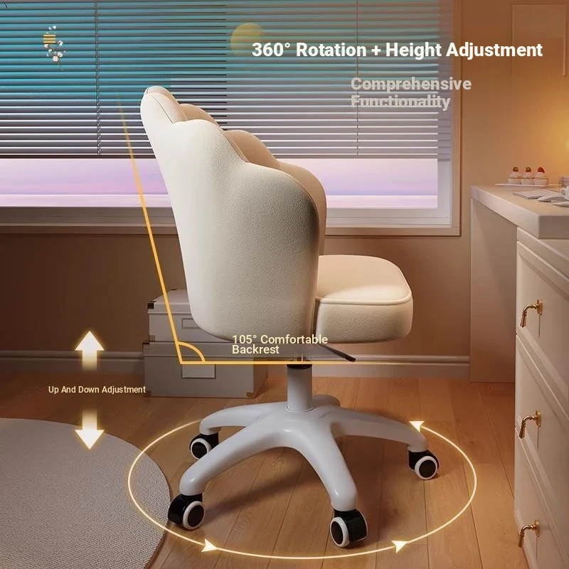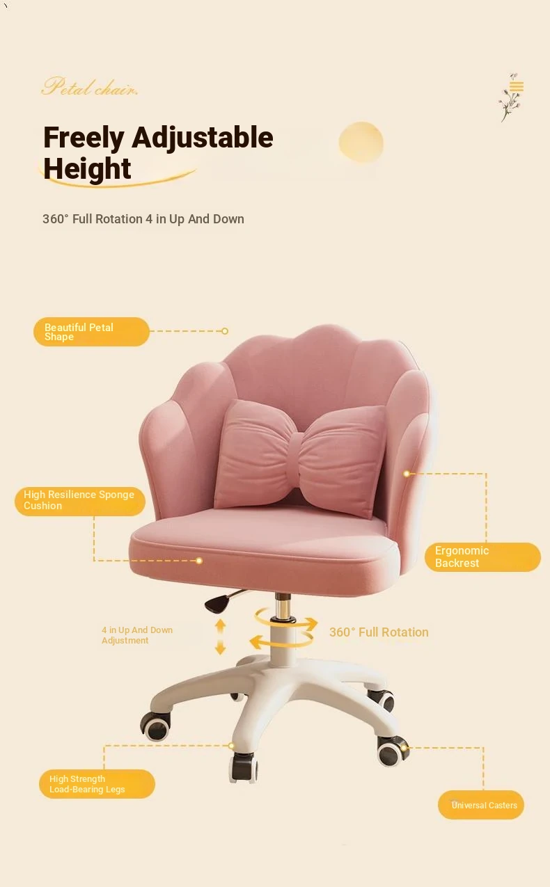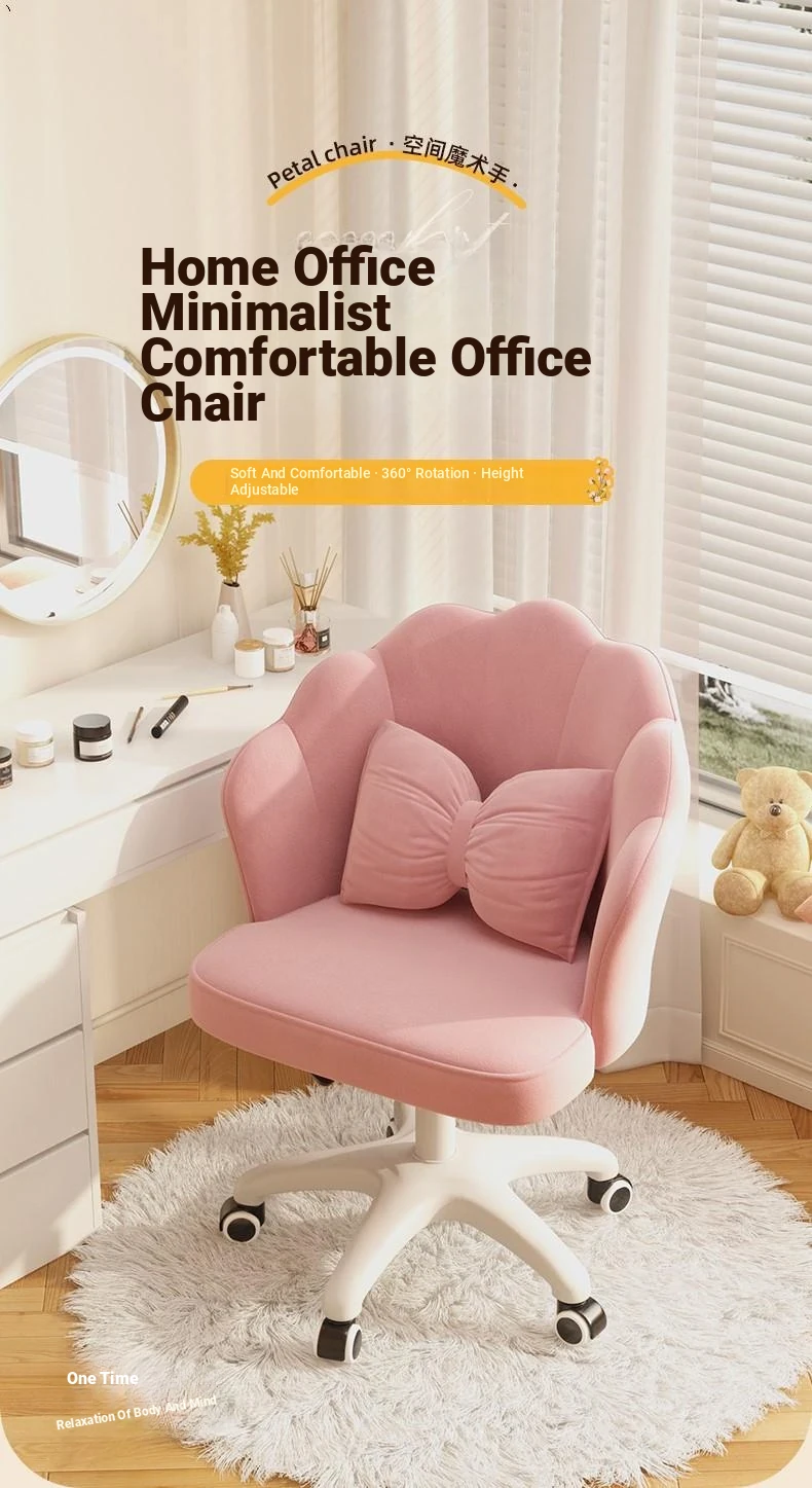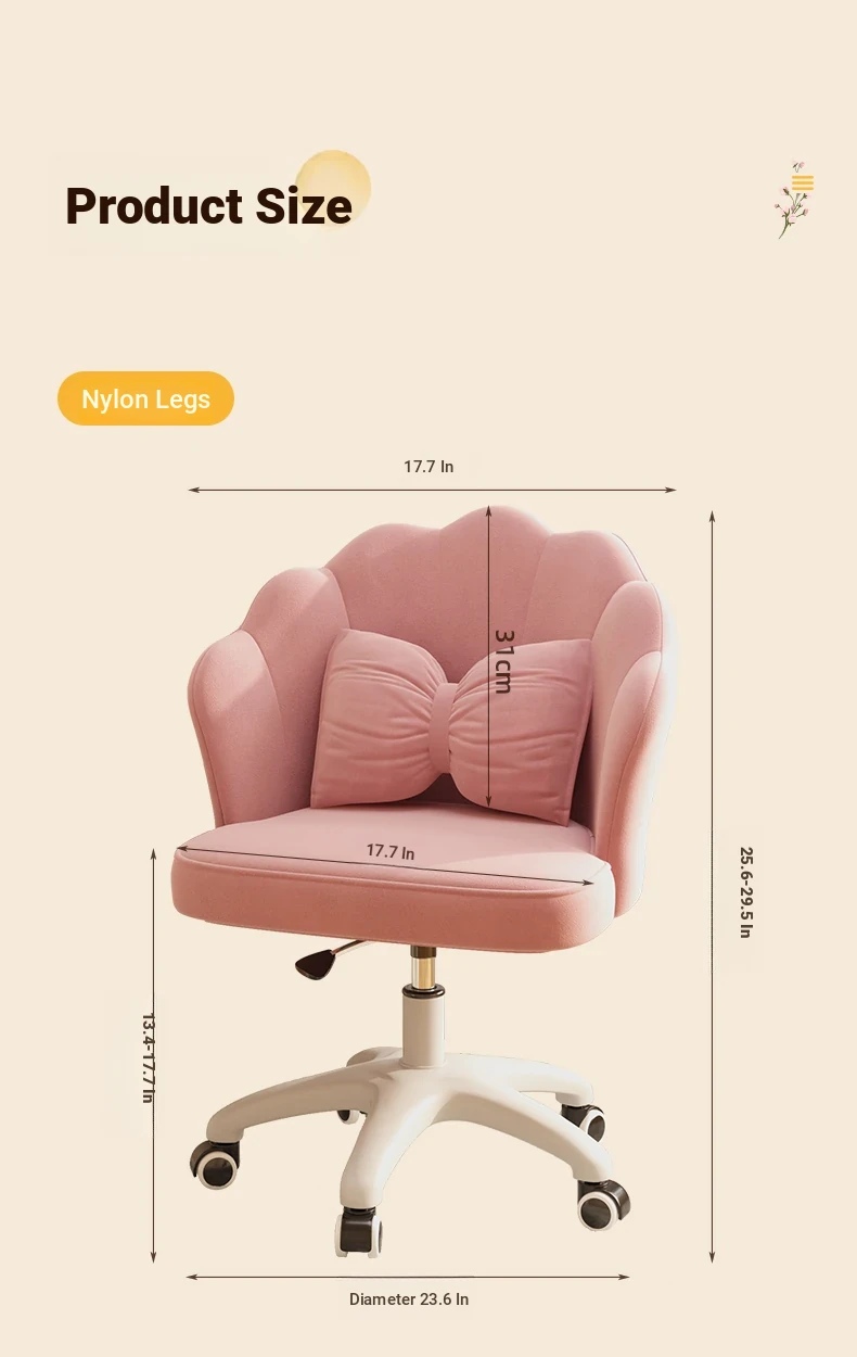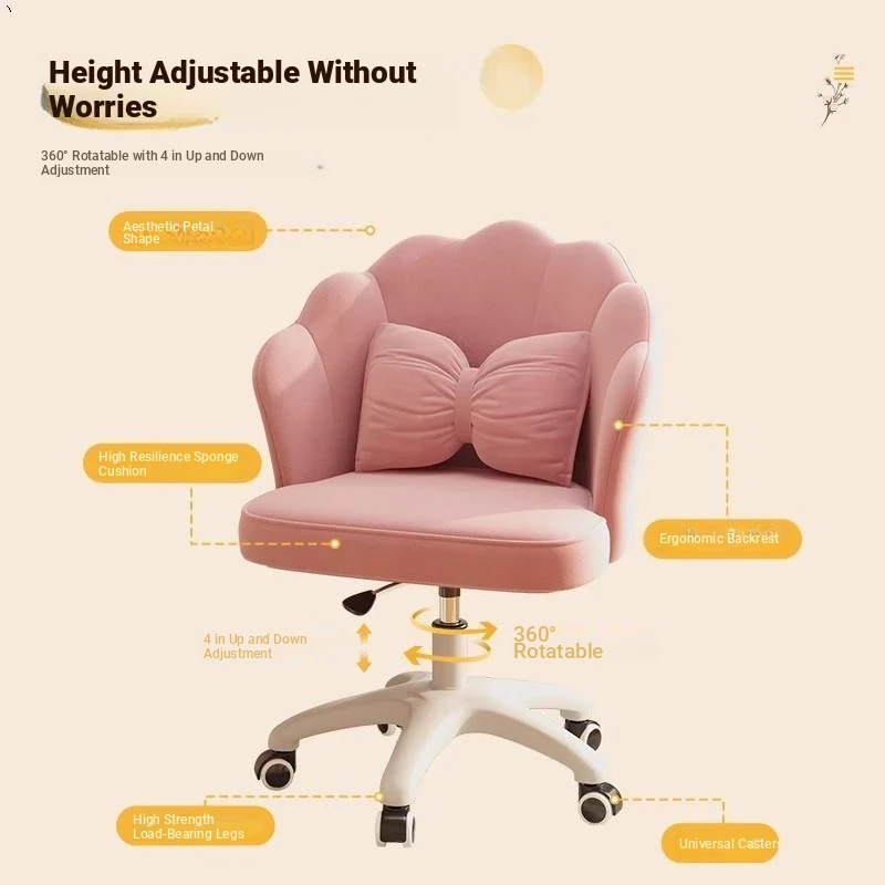 Adjustable Study Chair for Girls - Comfortable Home Office & Makeup Chair for Bedroom with Backrest for Long Sitting, Ideal for Study & Work
