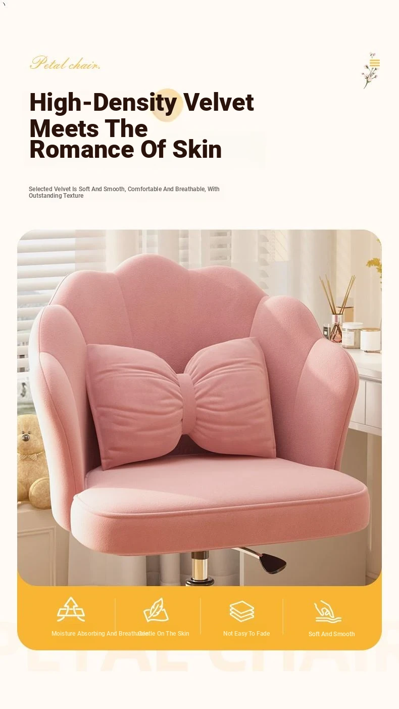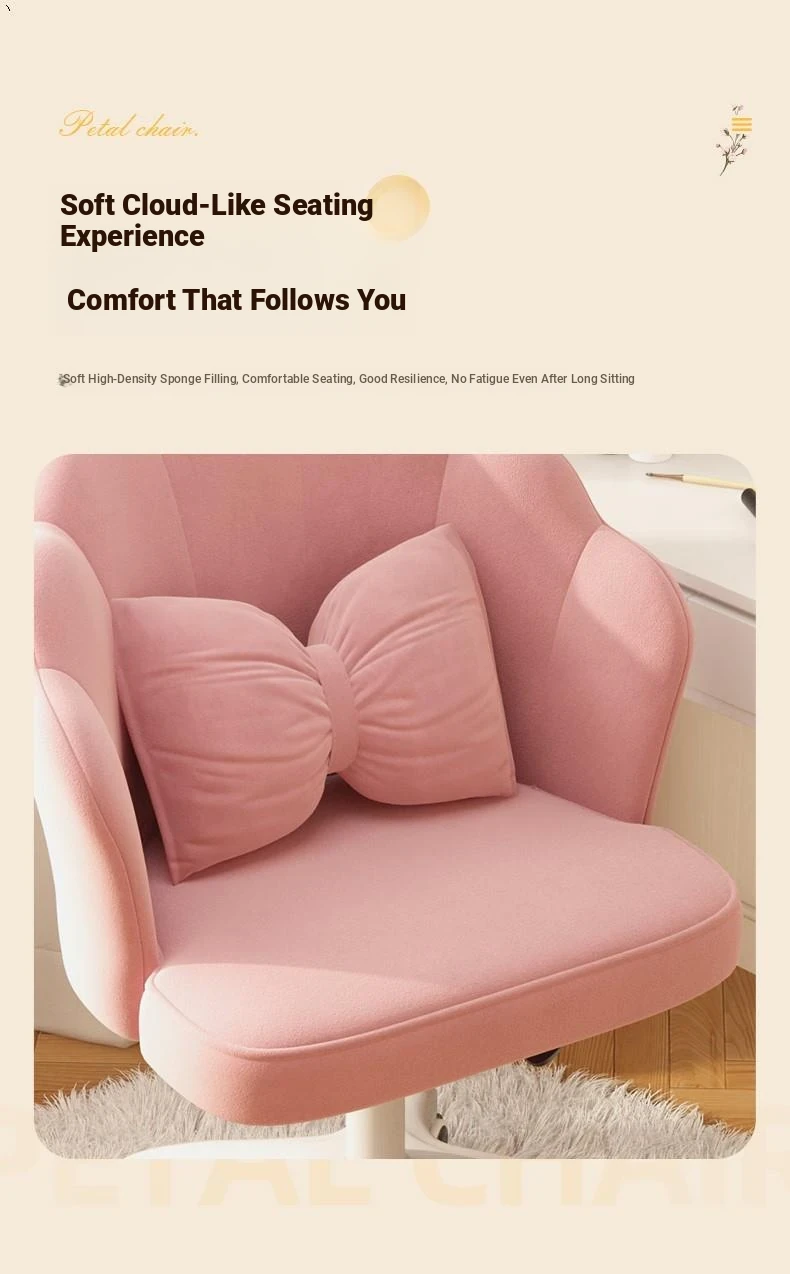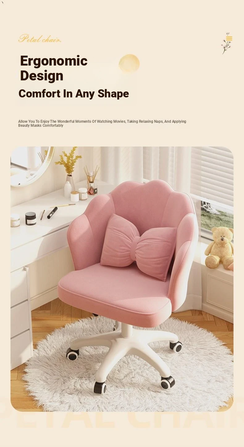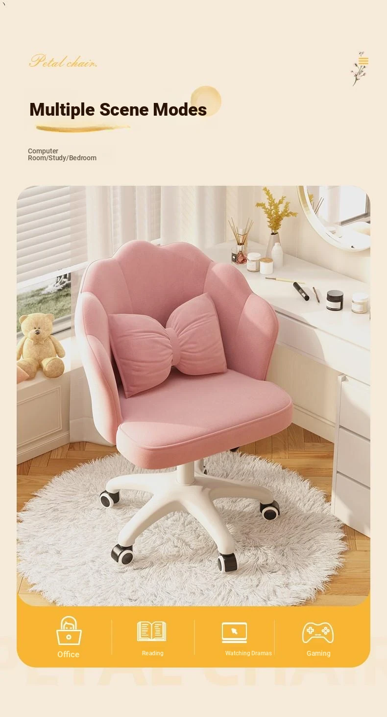 Adjustable Study Chair for Girls - Comfortable Home Office & Makeup Chair for Bedroom with Backrest for Long Sitting, Ideal for Study & Work