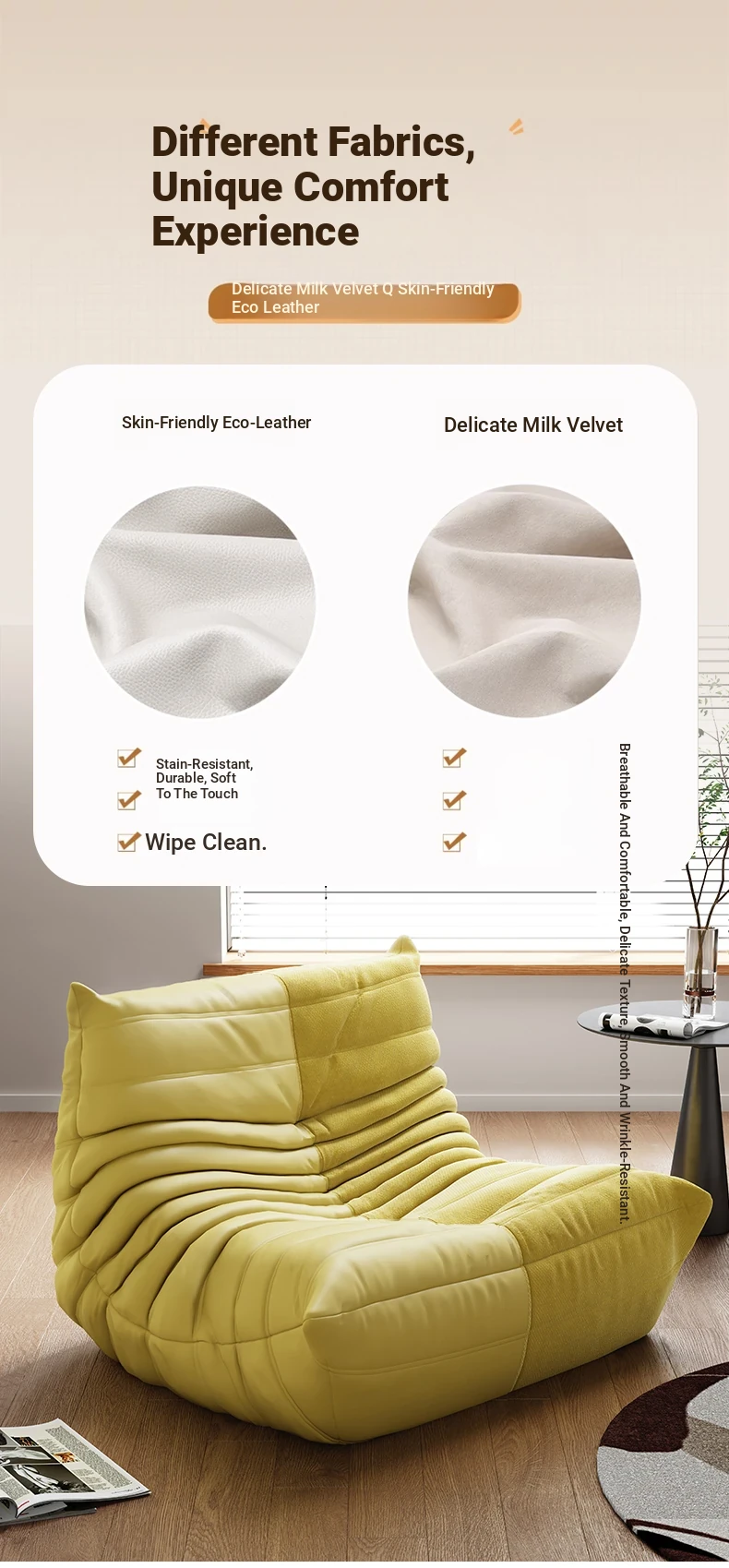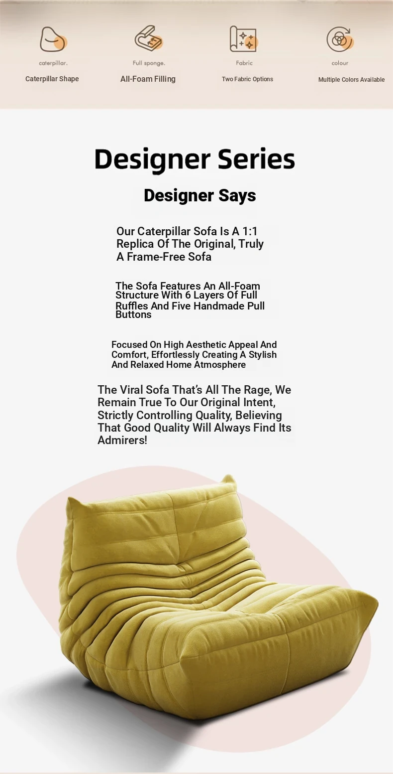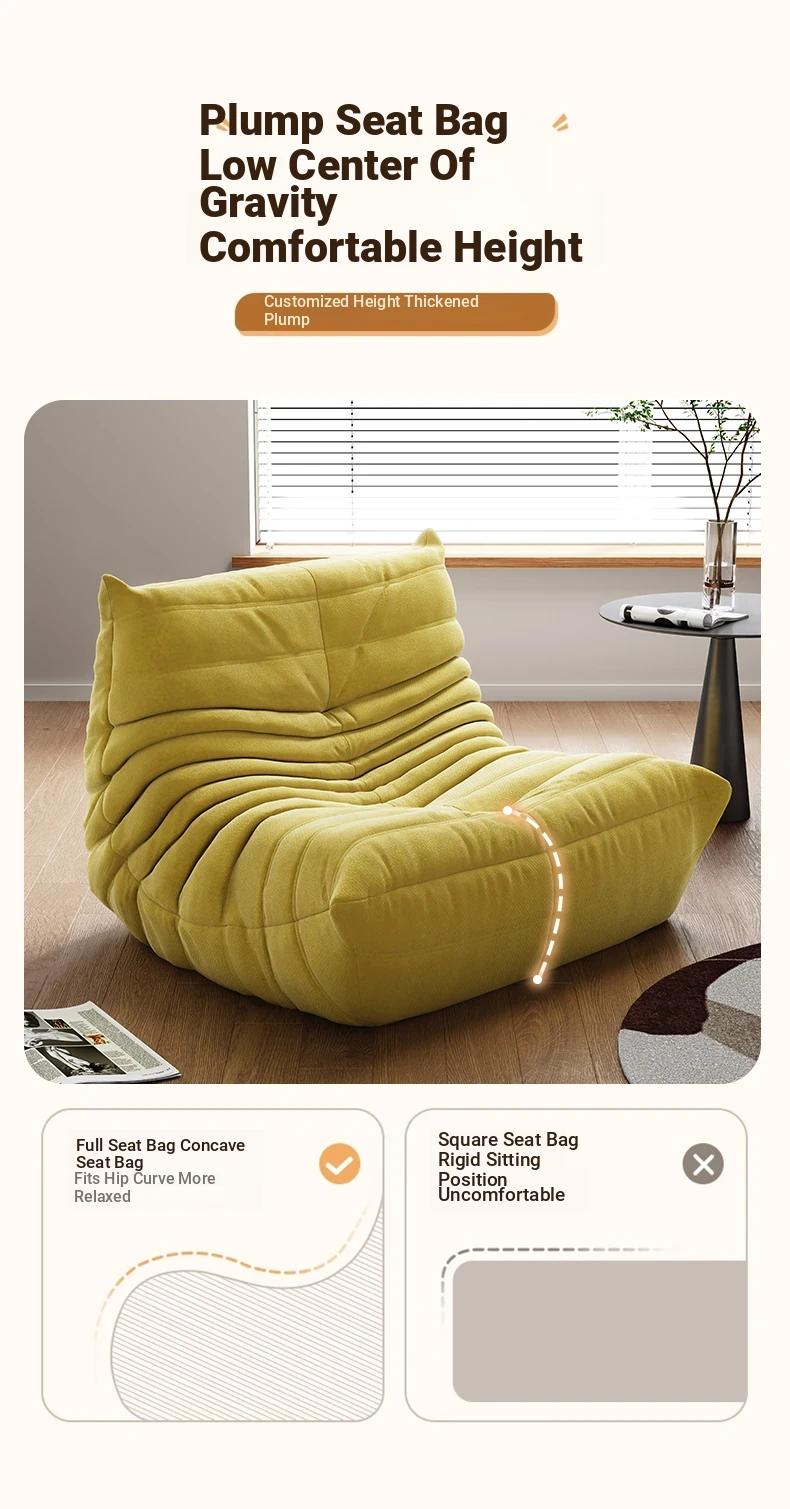 Caterpillar Lazy Sofa - Versatile Single Chair for Living Room, Balcony, and Bedroom | Sleep and Lounge Comfort | Original Togo Style Trendy Leisure Chair