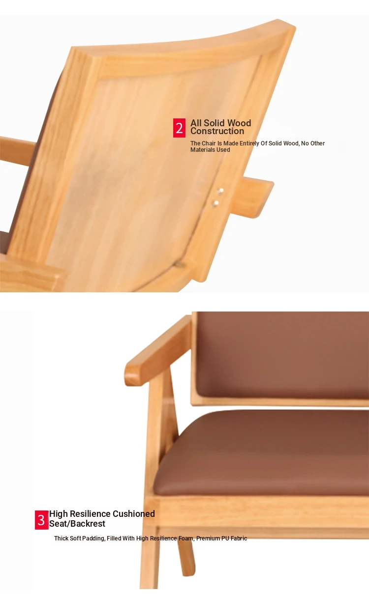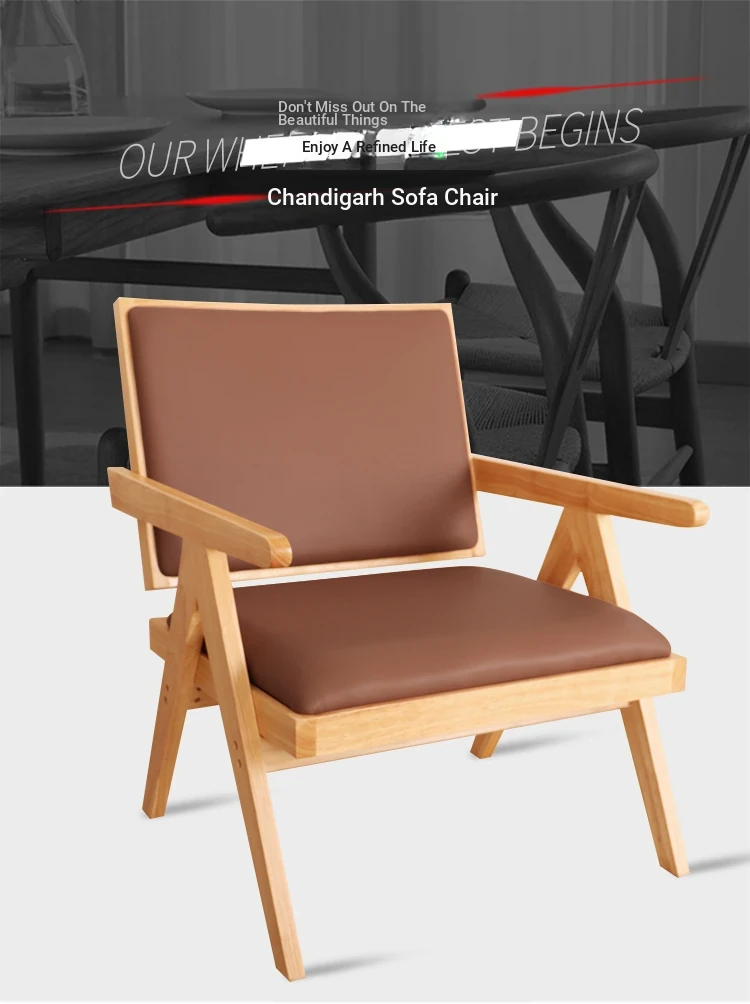 Chandigarh Single Sofa Chair - Nordic Style Solid Wood Soft Cushion Armchair, Designer Artistic Relaxation Chair, Natural Wood Accent Piece for Comfortable Living Spaces