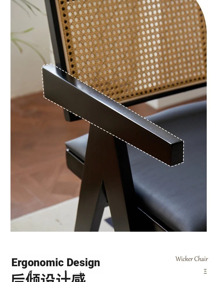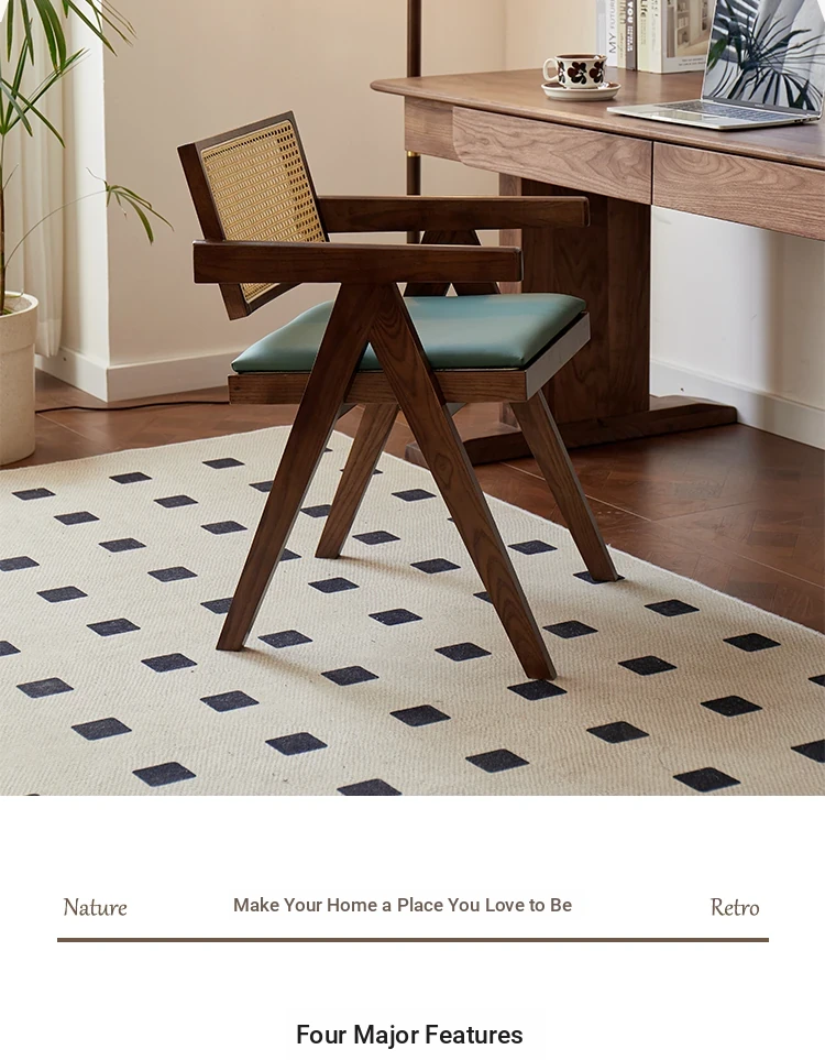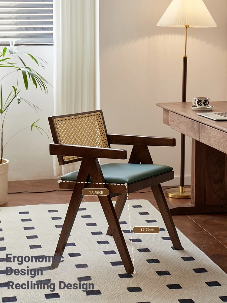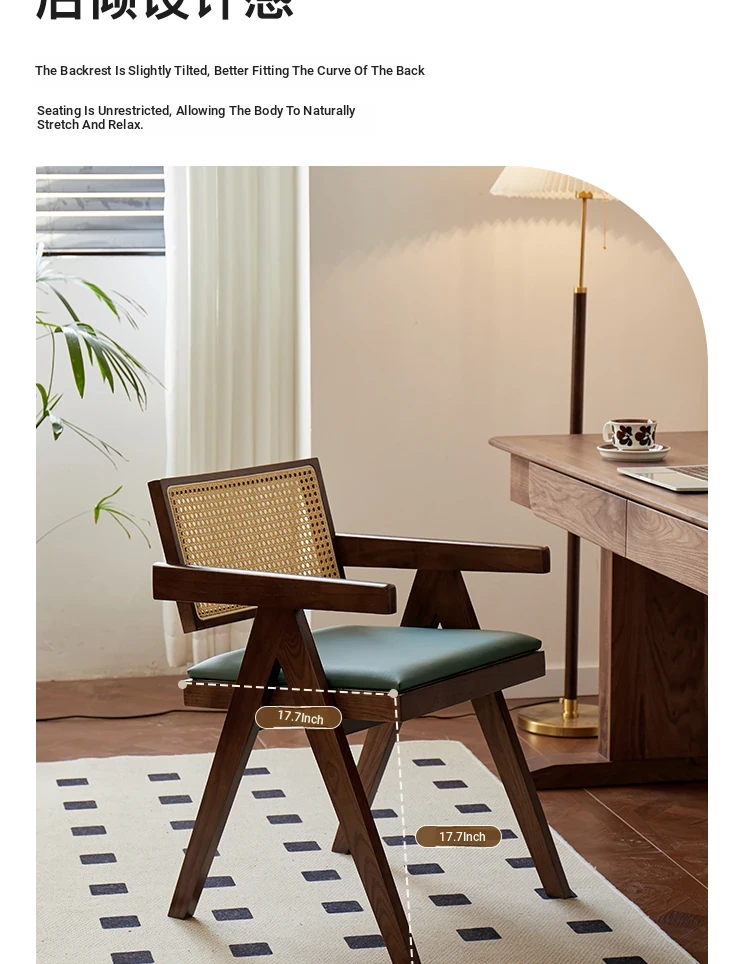 Rubber Wood walnut rattan seat -1.97in thickened frame