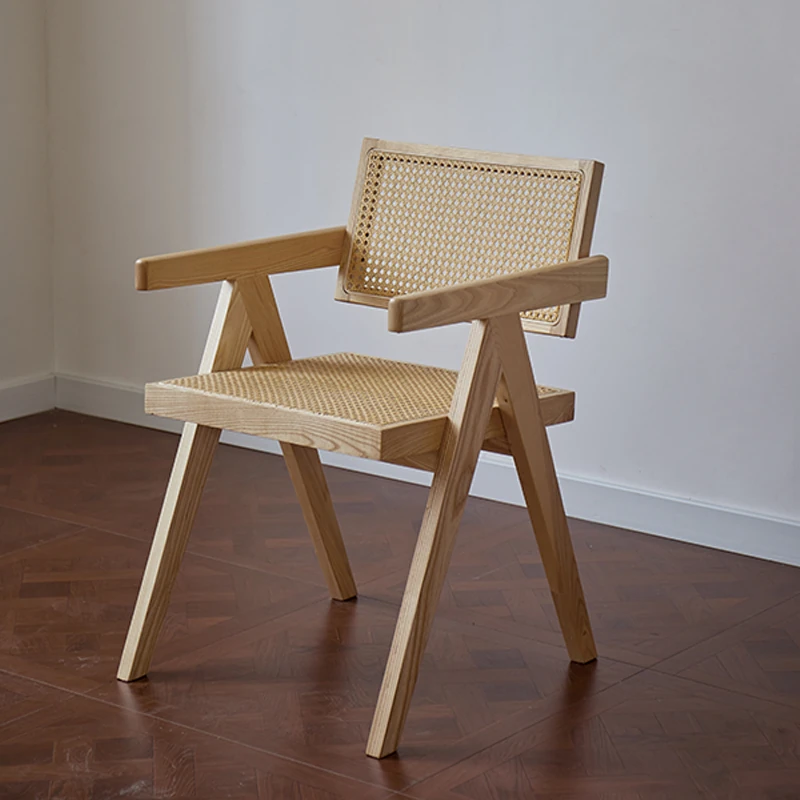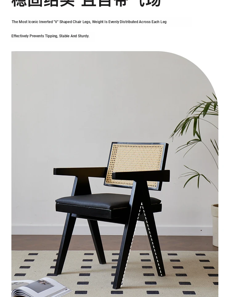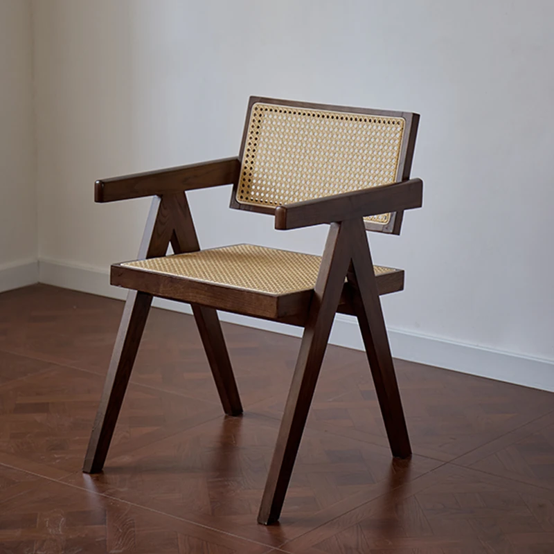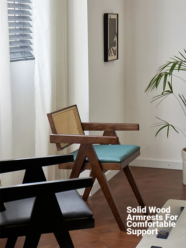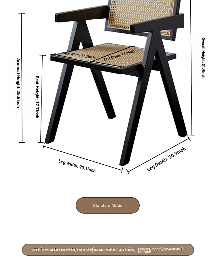 Rubber Wood walnut rattan seat -1.97in thickened frame