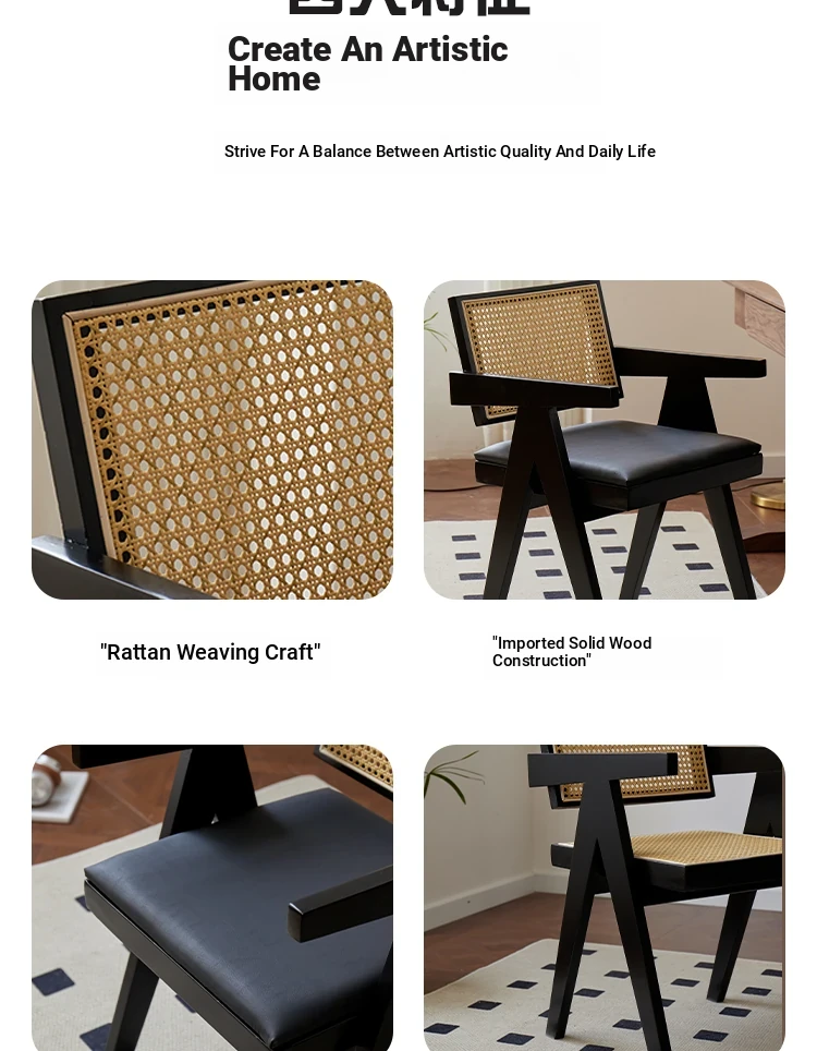 Rubber Wood Cherry rattan seat -1.97in thickened frame