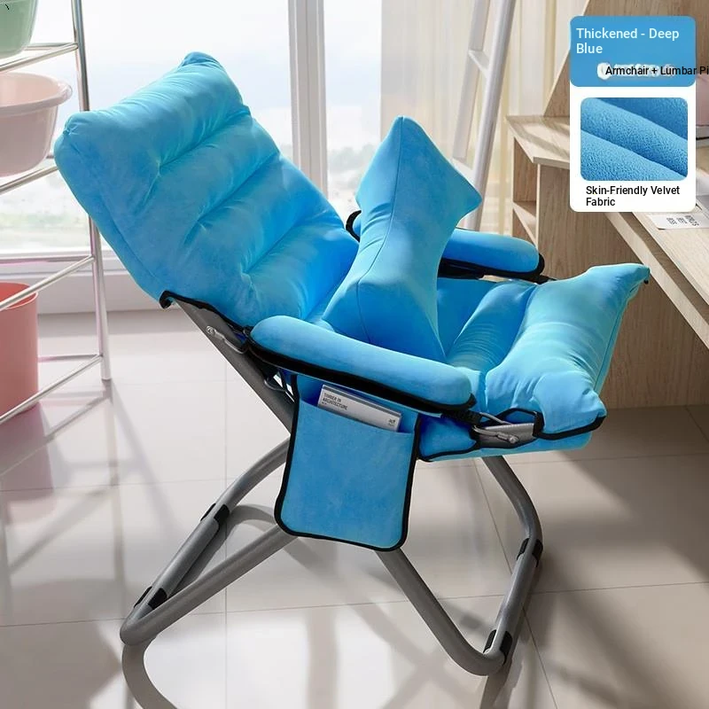 Thickened single chair + lumbar pillow + dark blue [including portable storage bag] 3-speed adjustment