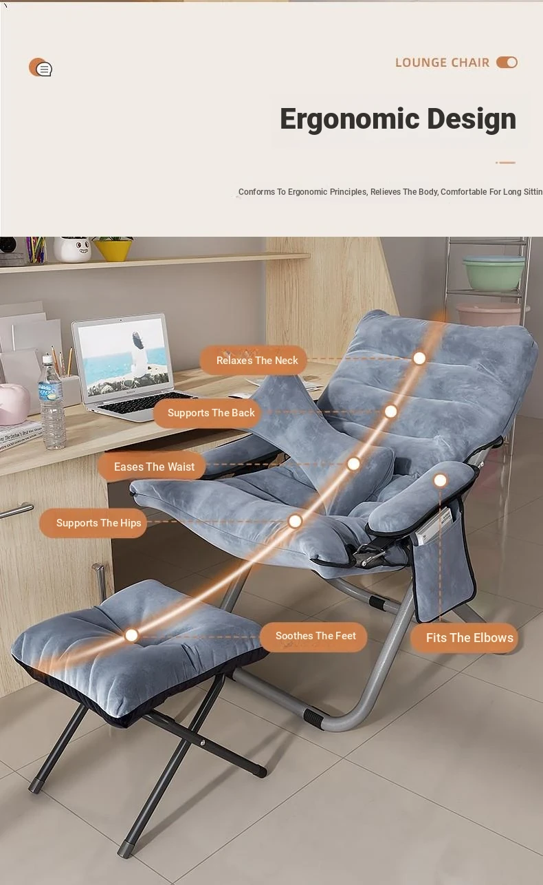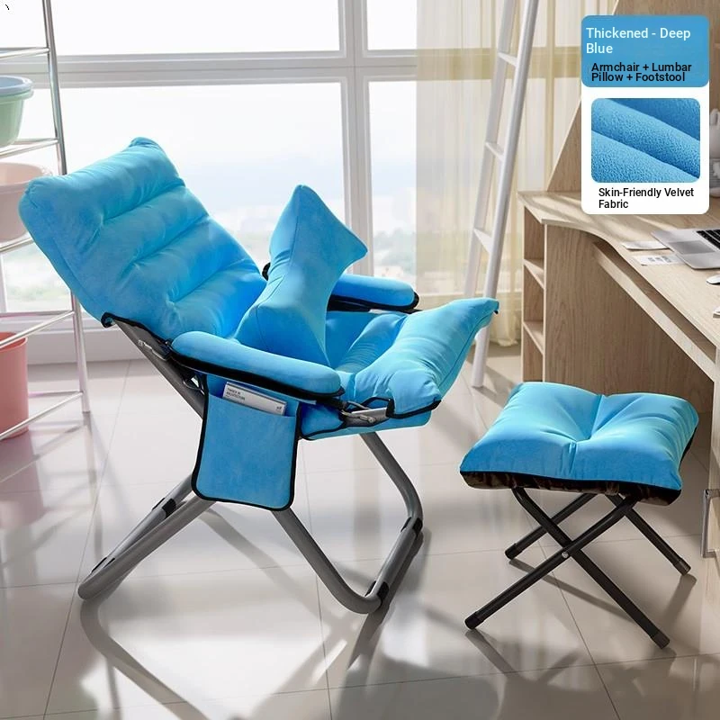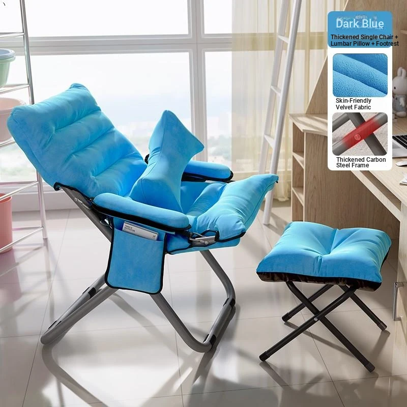 Thickened single chair + pedal + lumbar pillow + dark blue [including portable storage bag] 3-speed adjustment