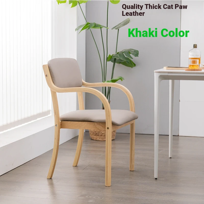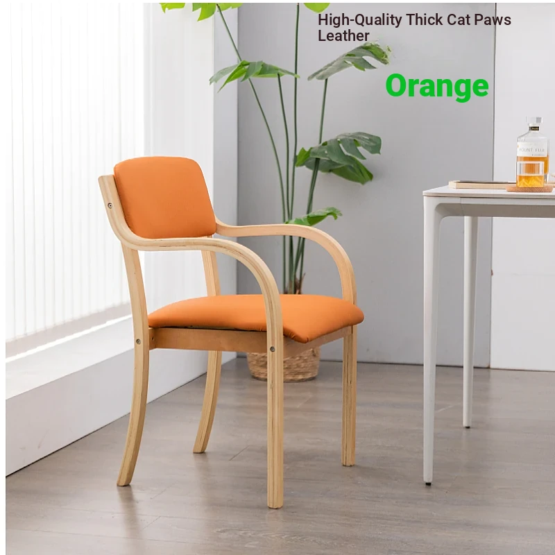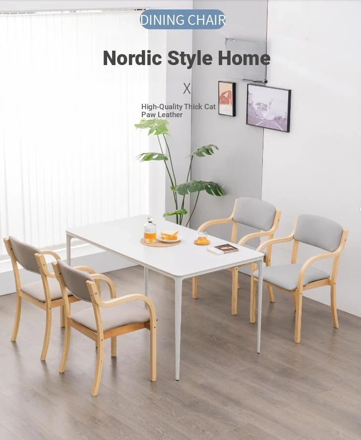 Durable Solid Wood Dining Chair with Armrests and Backrest for Seniors - Cat Scratch Resistant, Nordic Style, Modern Luxury Home Use