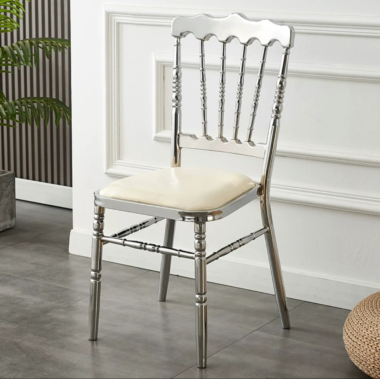 Plated silver frame white seat cushion