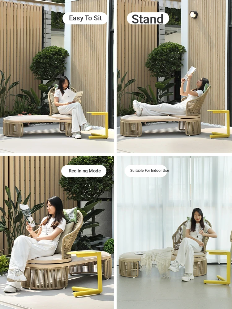 Elegant Reclining Chaise Lounge Chair for Home - Perfect for Balcony, Living Room, and Outdoor Use. Comfortable Lazy Chair with Rotating Feature, Ideal for Villas and Patios. Enjoy Relaxation in Style!
