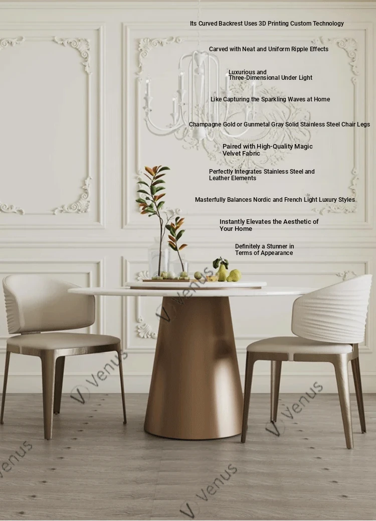 Italian Chic Wavy Pattern Dining Chair – High-End Custom Design for Home, Perfect for Island Counters and Villas, Ideal for Elegant Meetings and Conversations