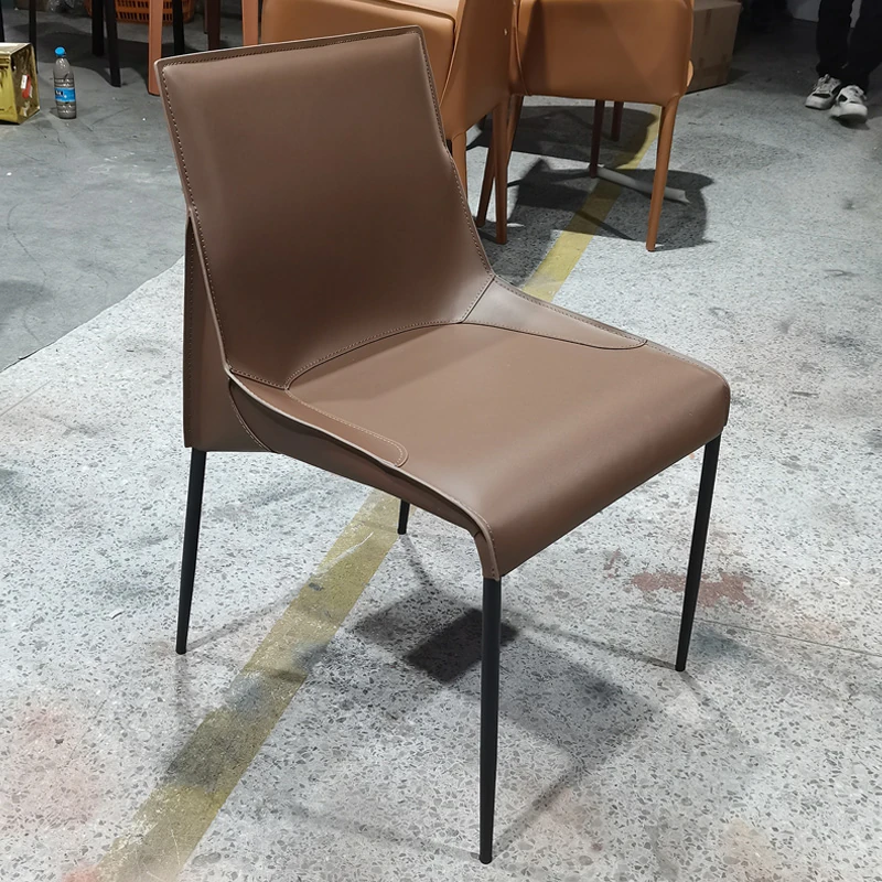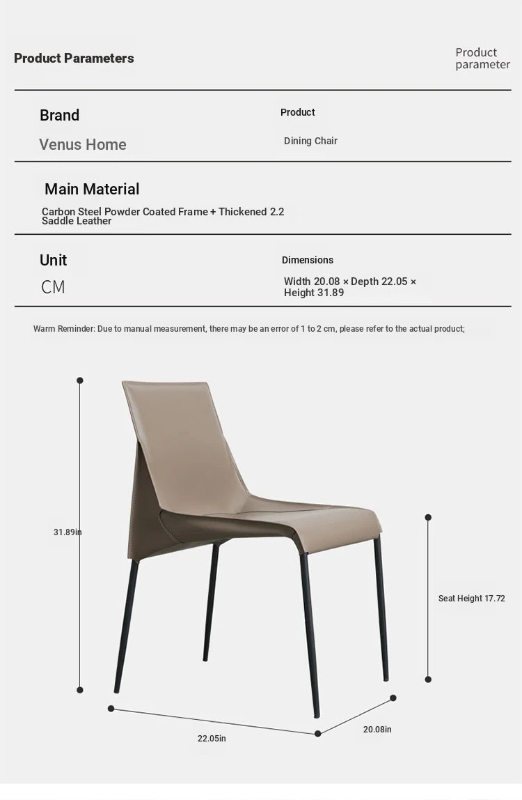 Italian Leather Saddle Dining Chair - Luxurious Designer Saddle Chair for Sample Rooms, Premium Quality Leather Chair for Hotels and Clubs, Perfect for Meetings and Conversations.