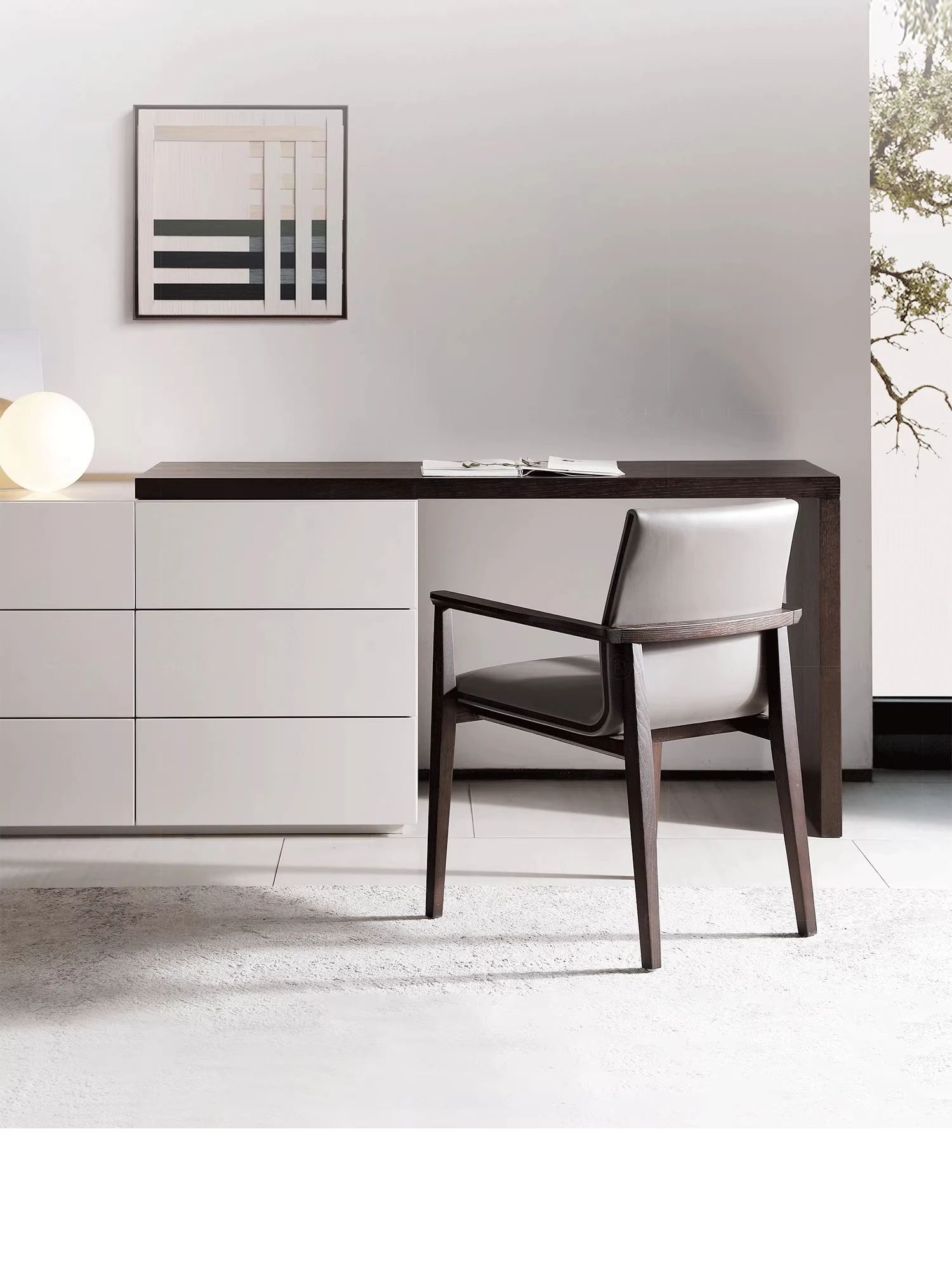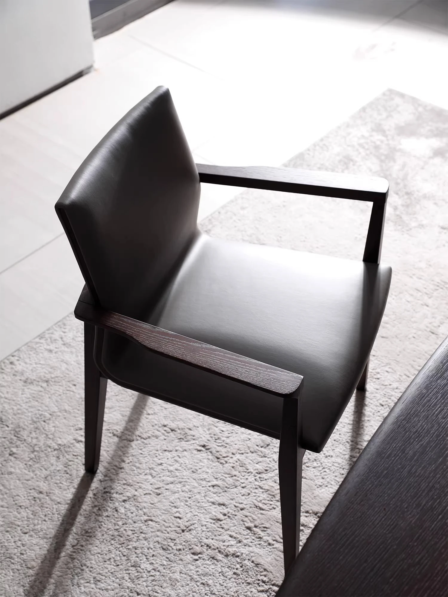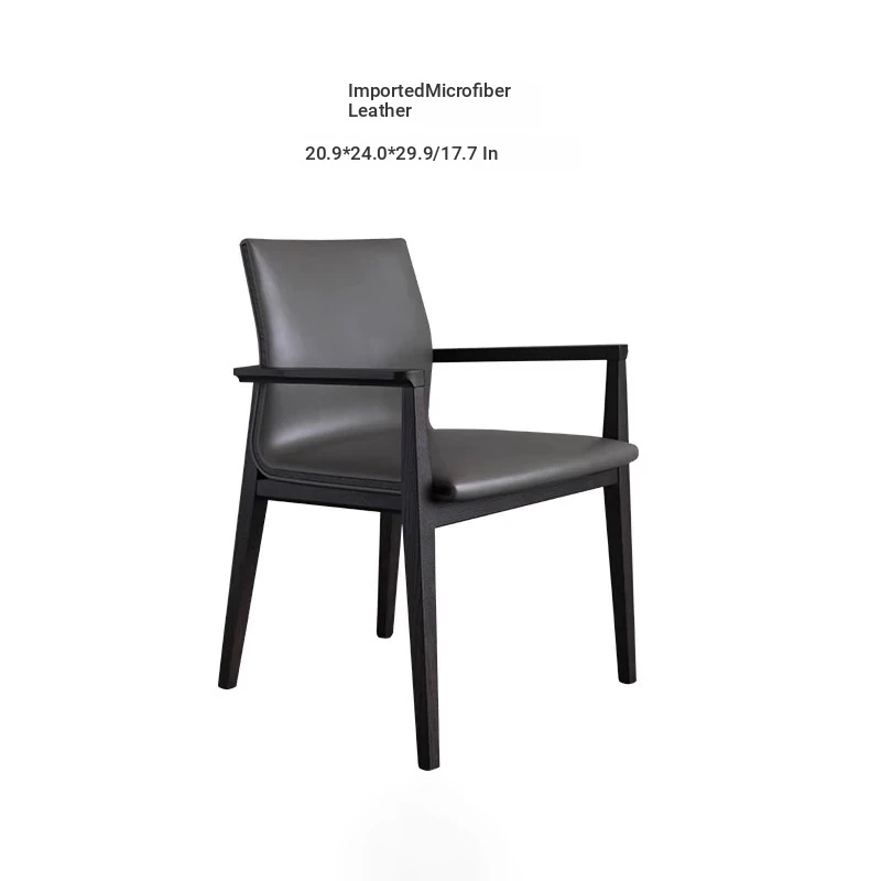 Italian Luxury Leather Dining Chair with Armrests - Designer Style Upholstered Backrest - Perfect for Home and Office Use - Solid Wood Construction - Ideal for Dining Rooms and Studies