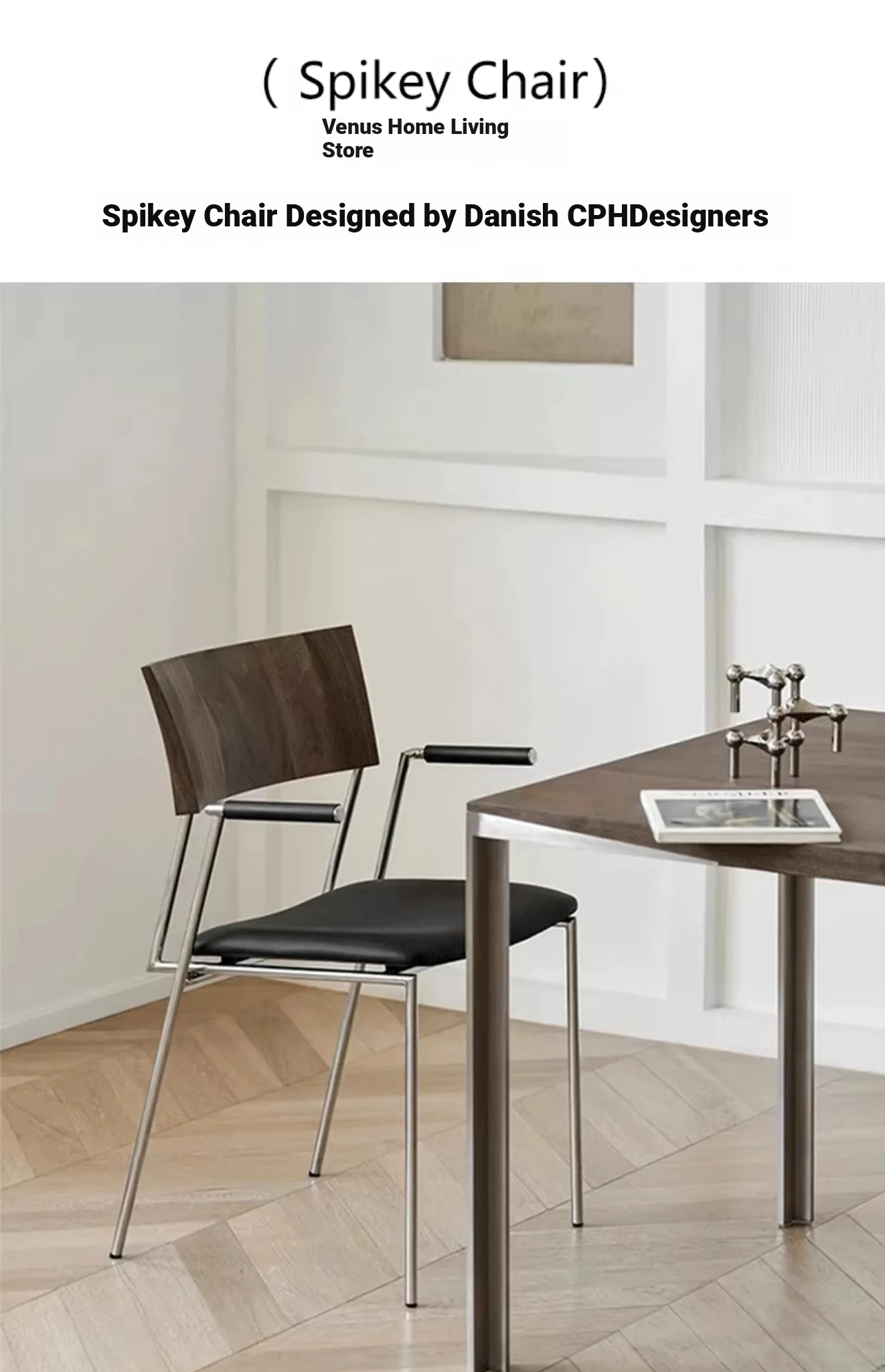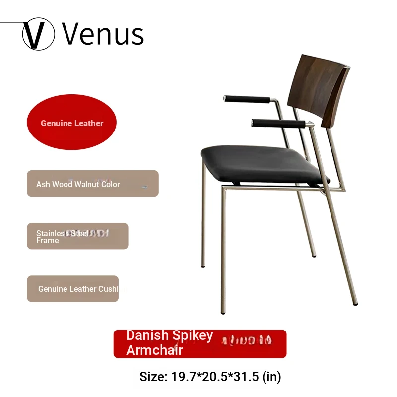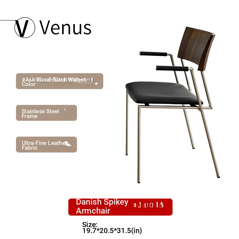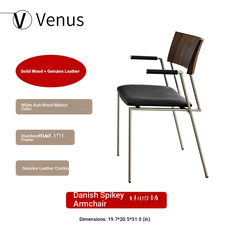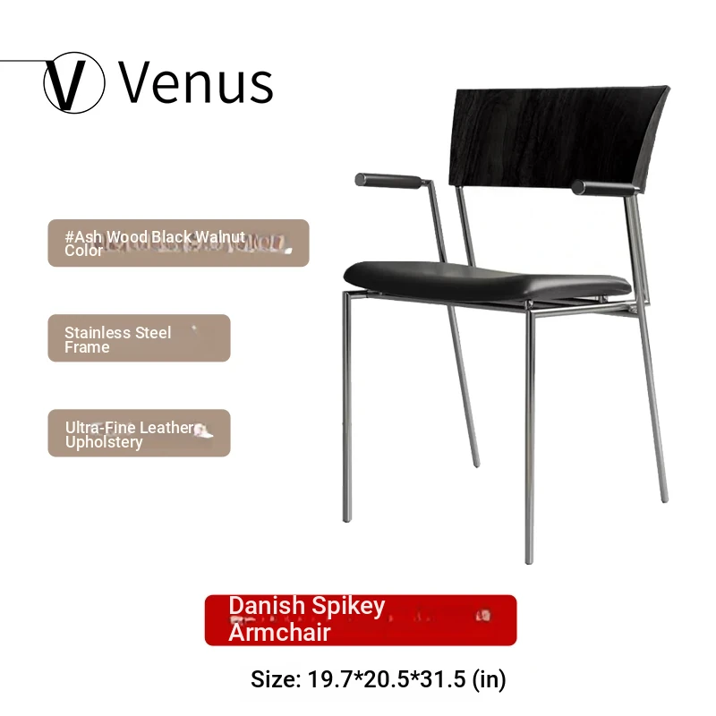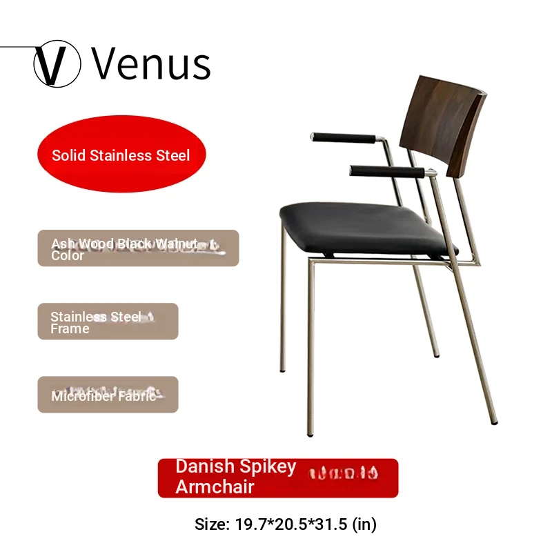 Solid stainless steel chair [with armrests]](Stainless Steel + ash wood)