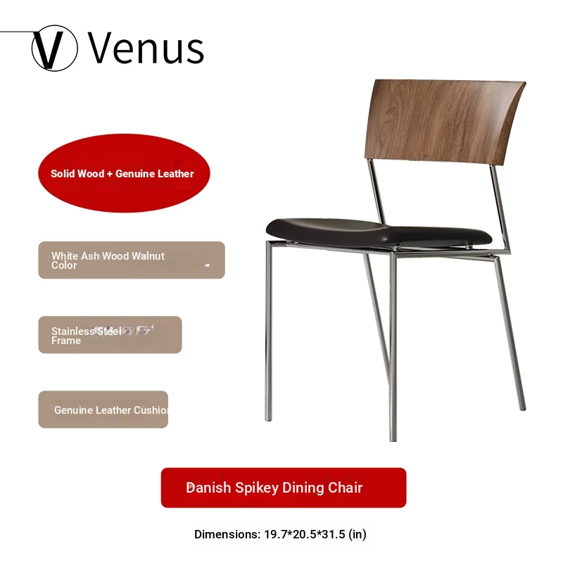 Solid Danish dining chair [leather without armrests]](Stainless Steel + ash wood)