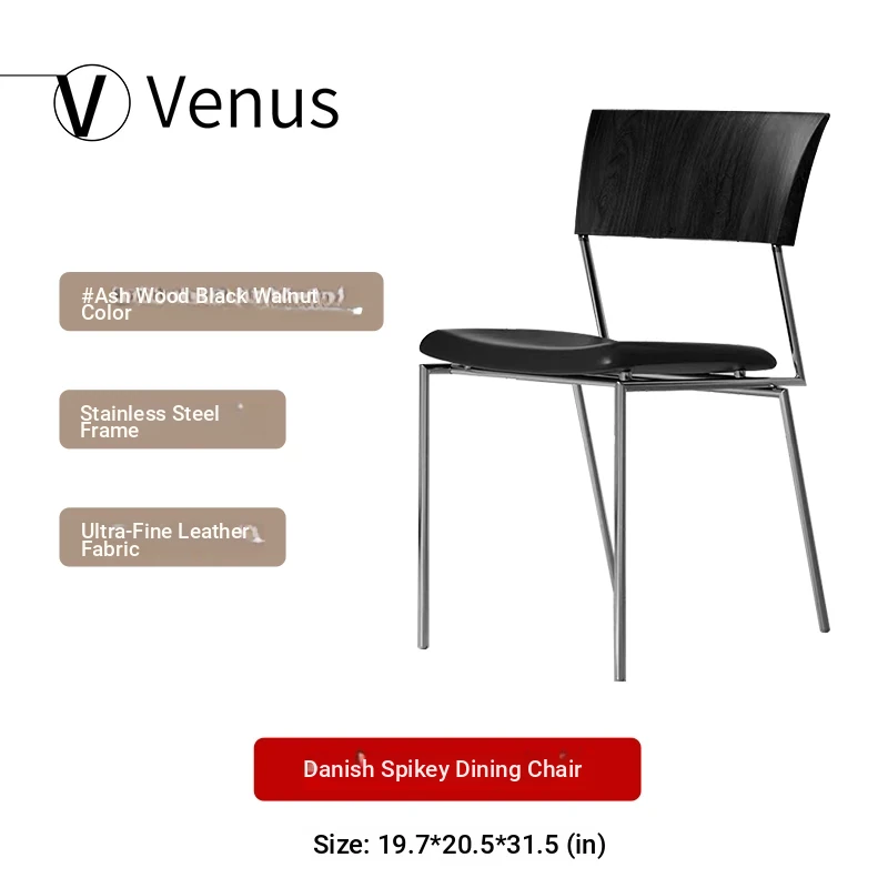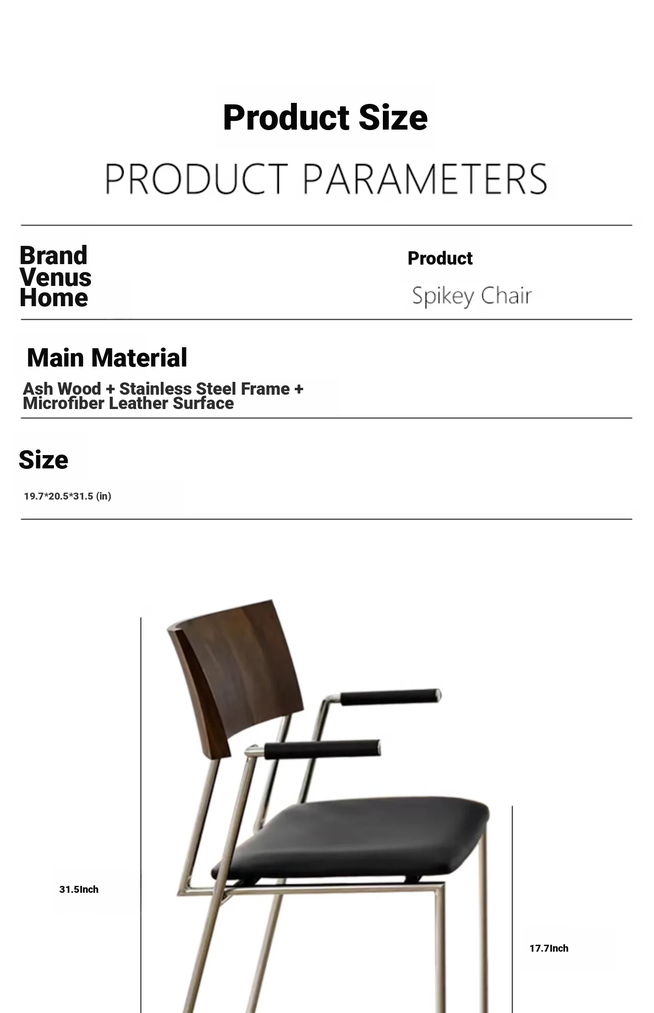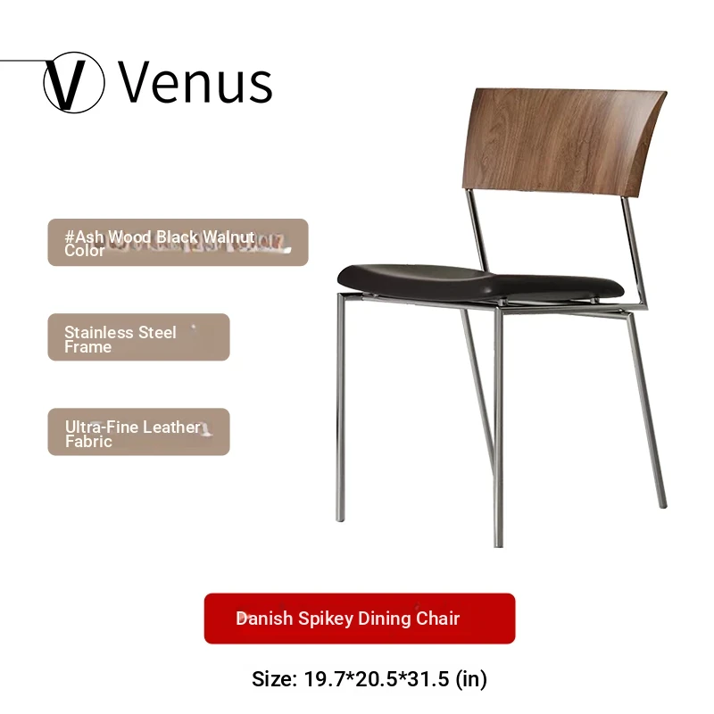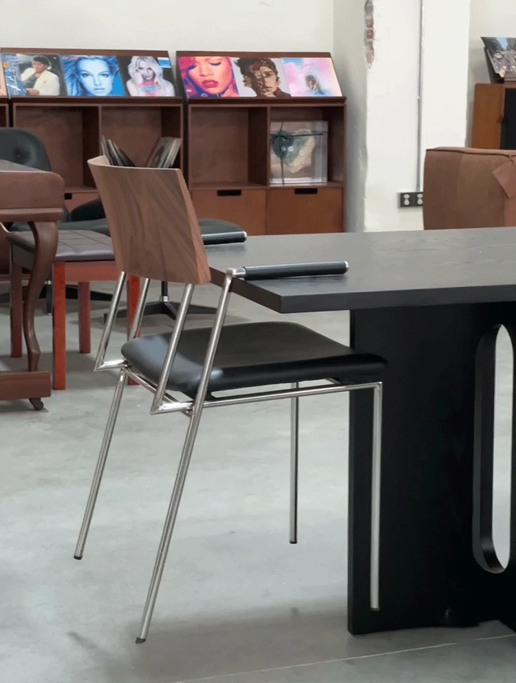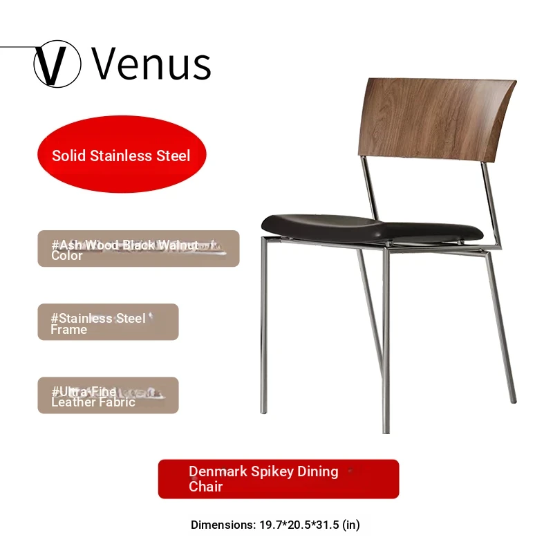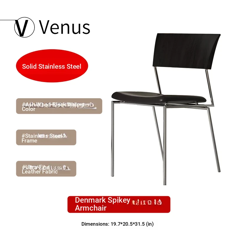 Solid stainless steel chair [Black without armrests]](Stainless Steel + ash wood)