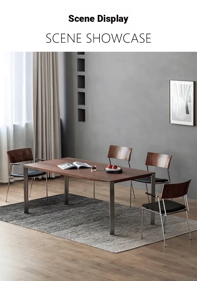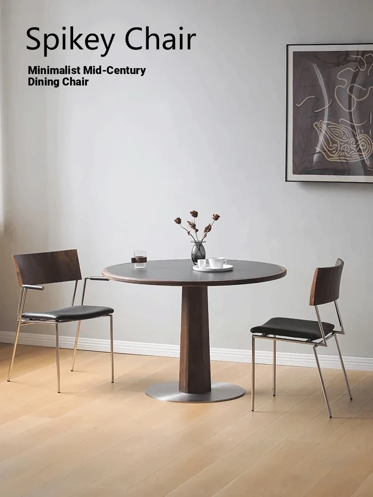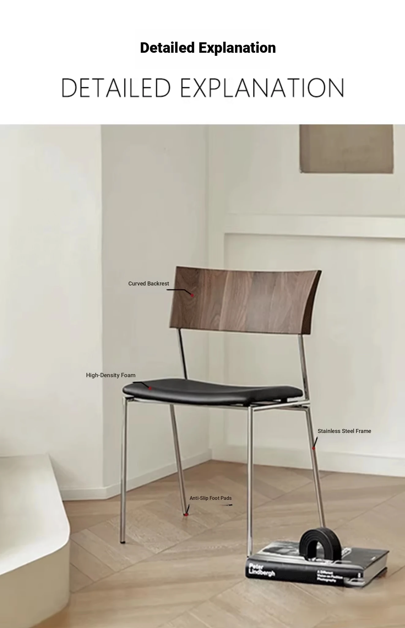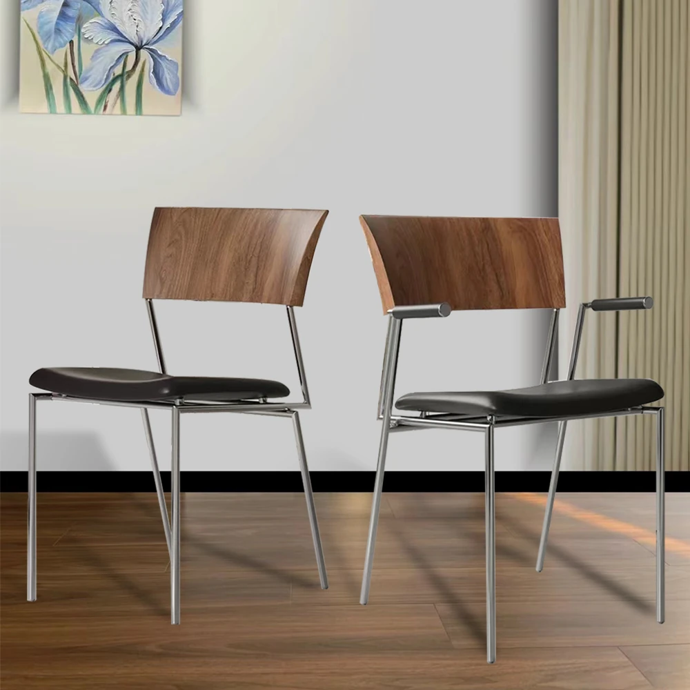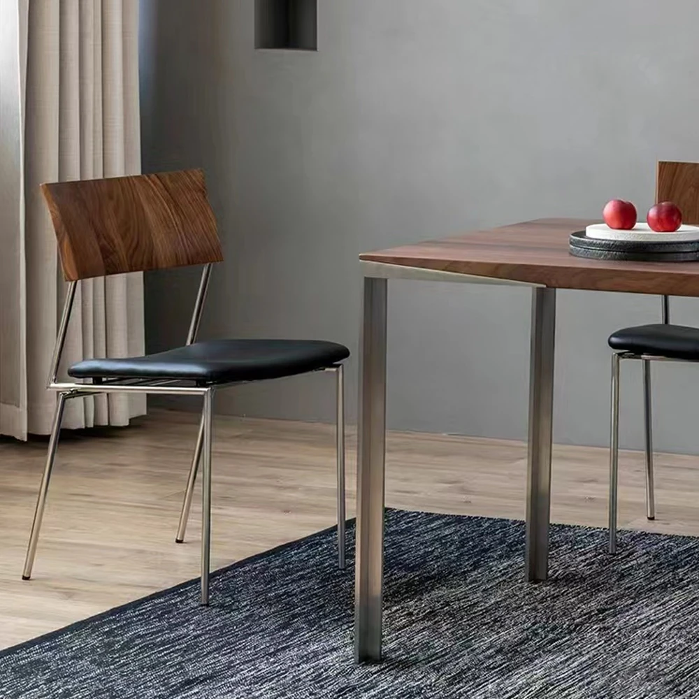 Solid stainless steel chair [Black without armrests]](Stainless Steel + ash wood)