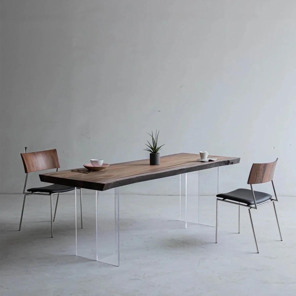 Solid stainless steel chair [without armrests]](Stainless Steel + ash wood)