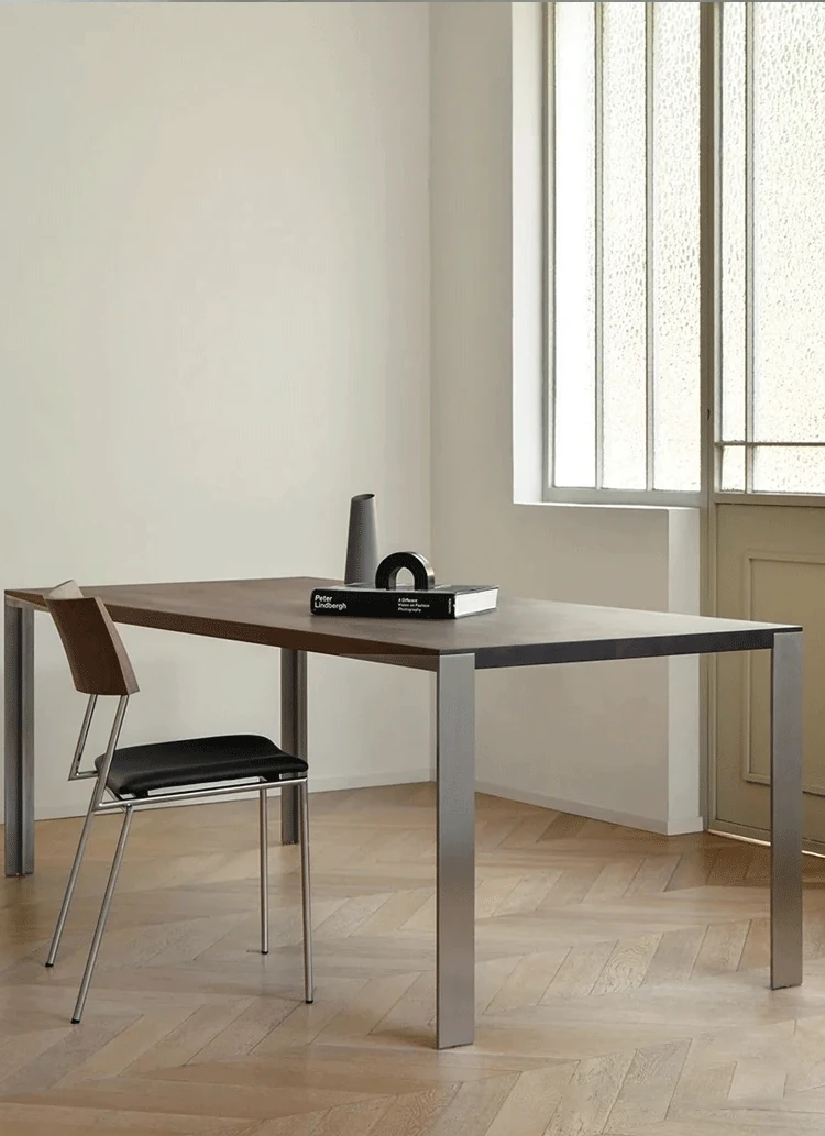 Danish stainless steel chair [without armrests]](Stainless Steel + ash wood)