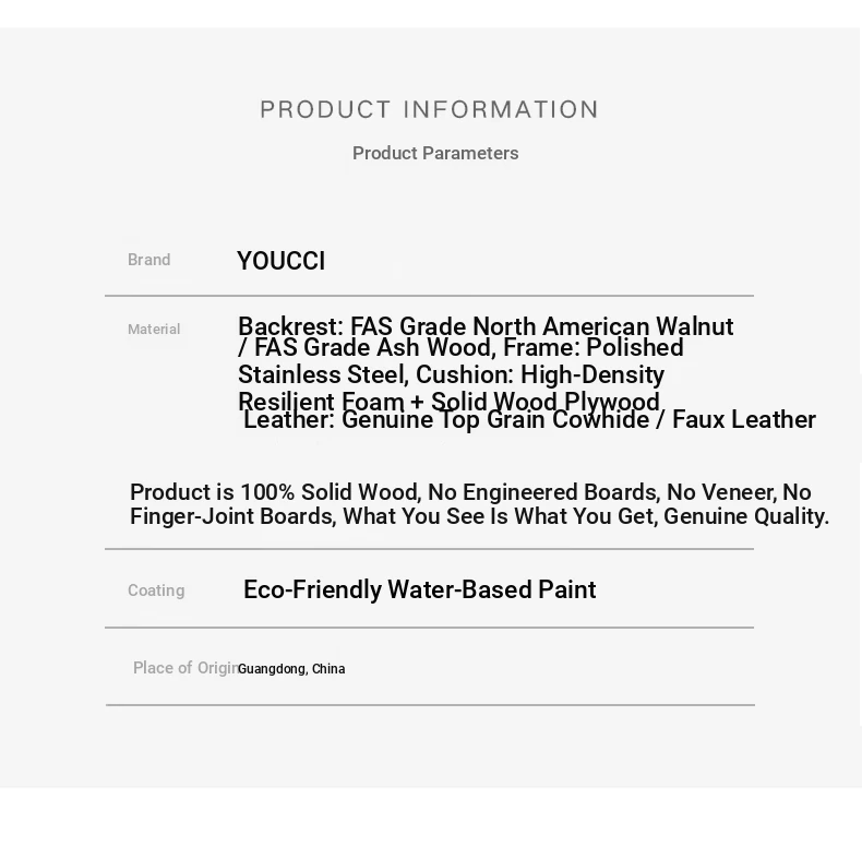 Black Walnut Backrest Non-Armchair Cushion Leather