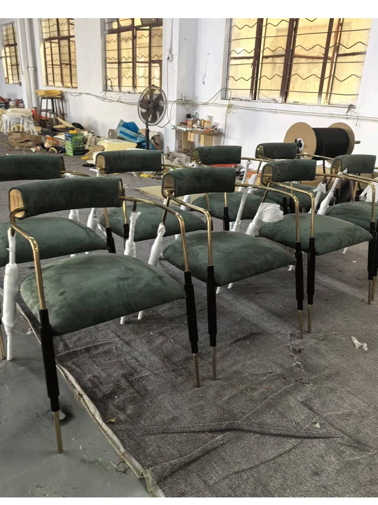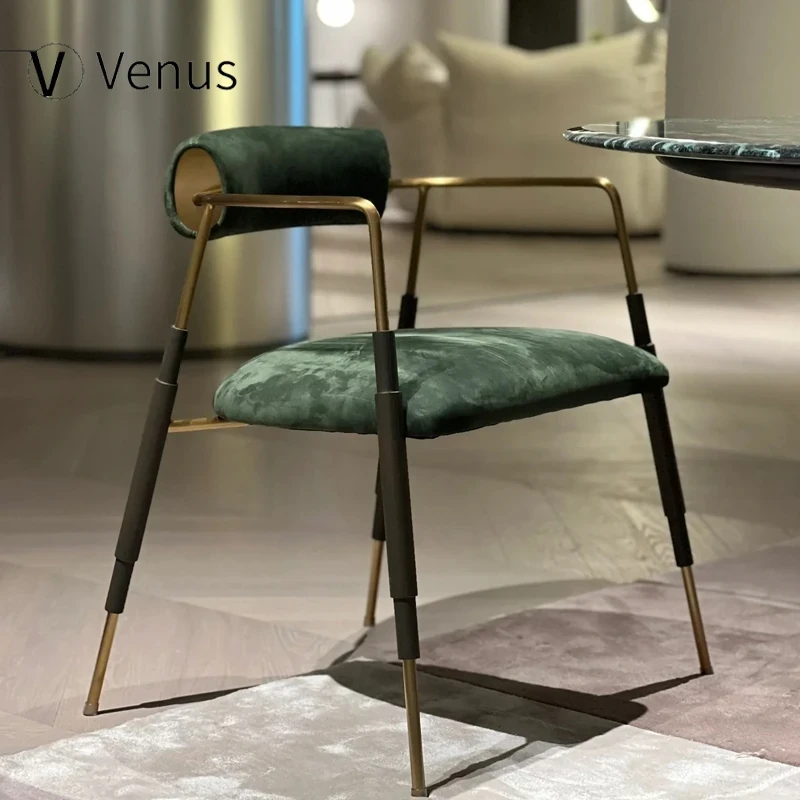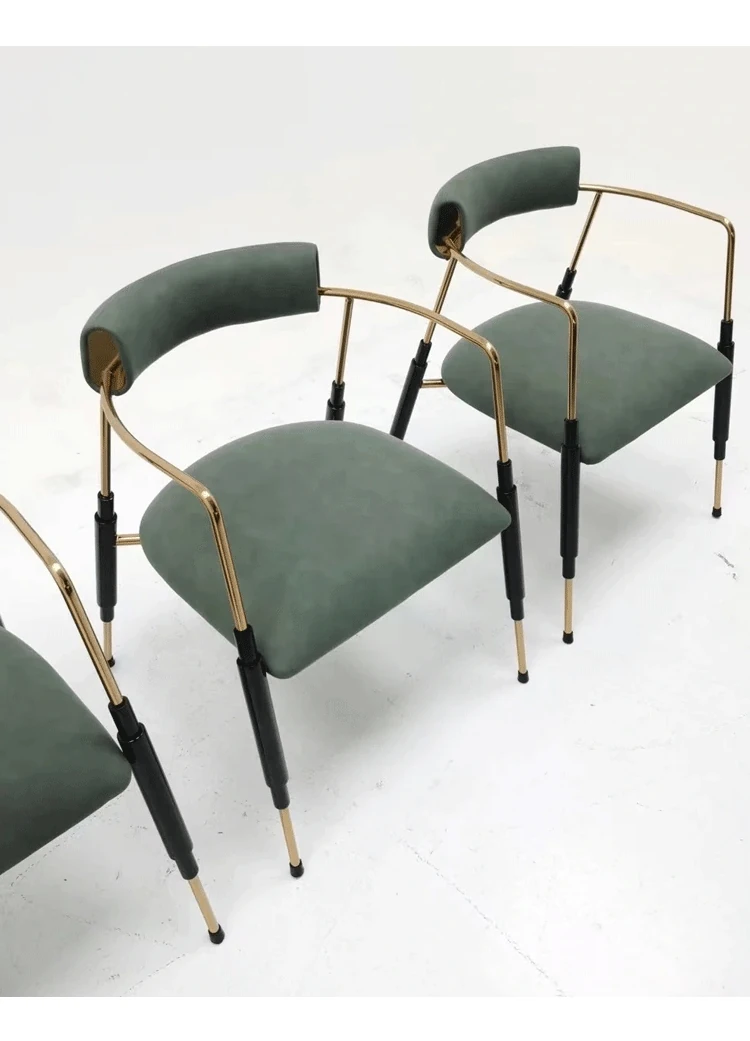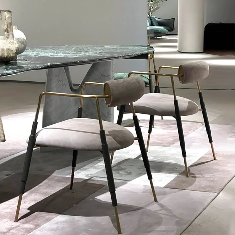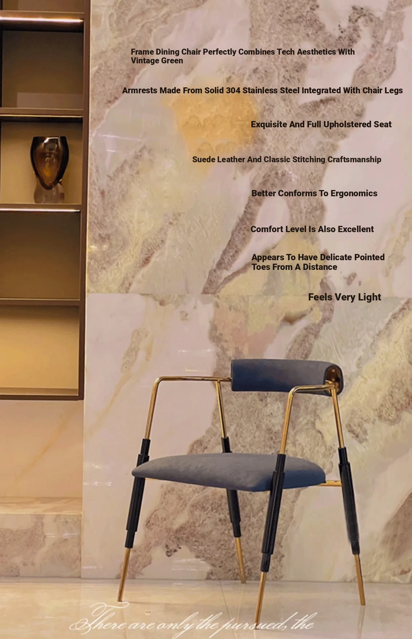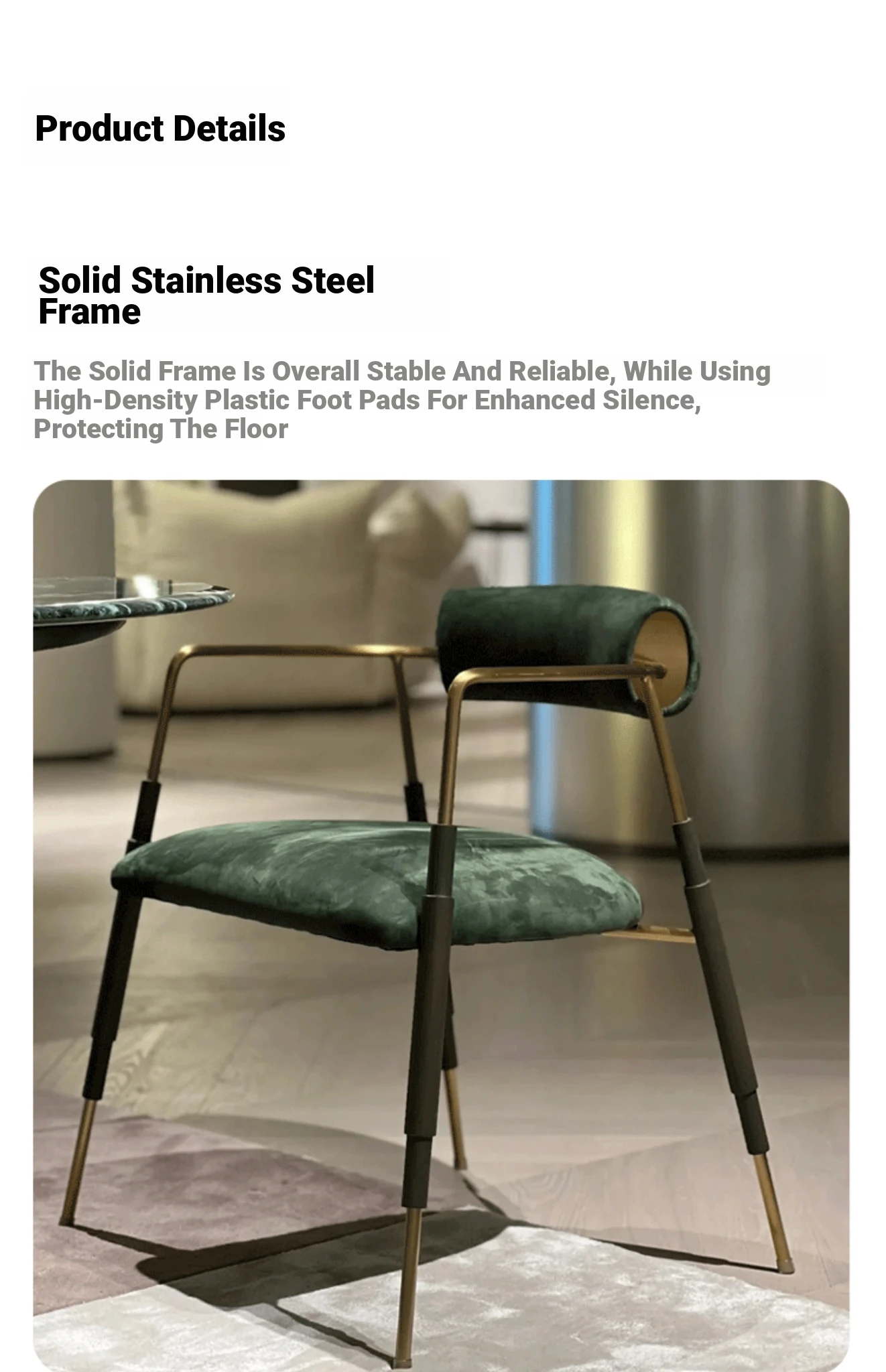 Italian Minimalist High-End Stainless Steel and Fabric Luxury Dining Chair – Designer Armchair for Upscale Restaurants and Showrooms