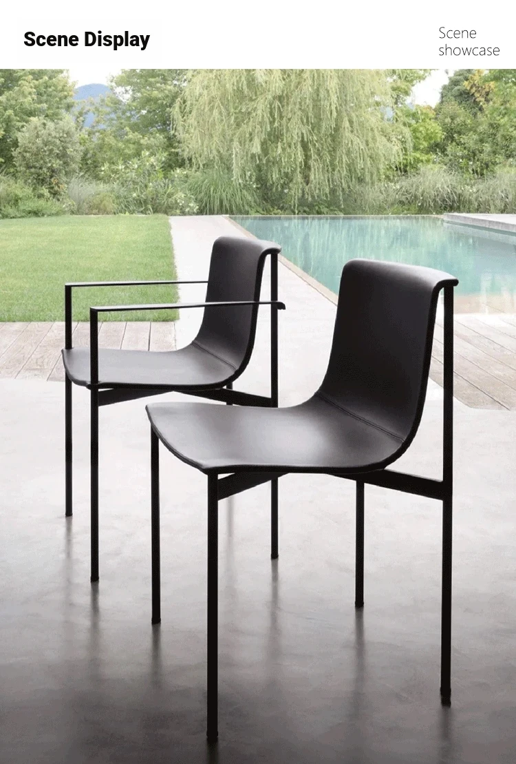 Italian Minimalist Saddle Leather Dining Chair - Modern High-End Nordic Designer Office and Meeting Chair, Perfect for Stylish Interiors