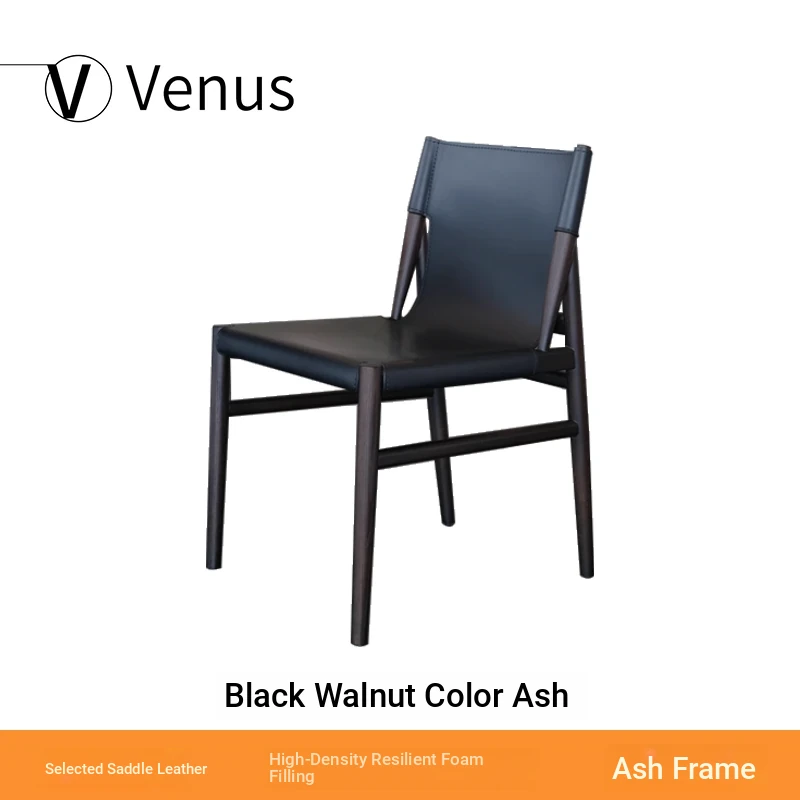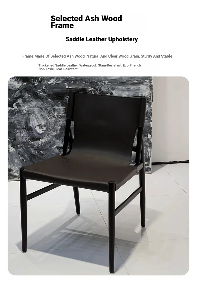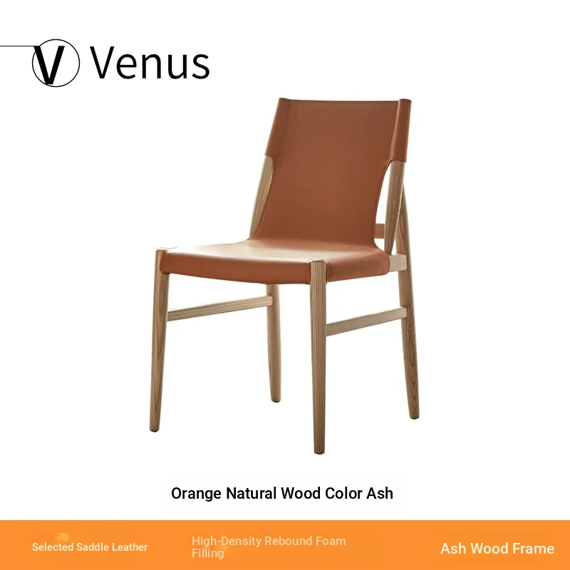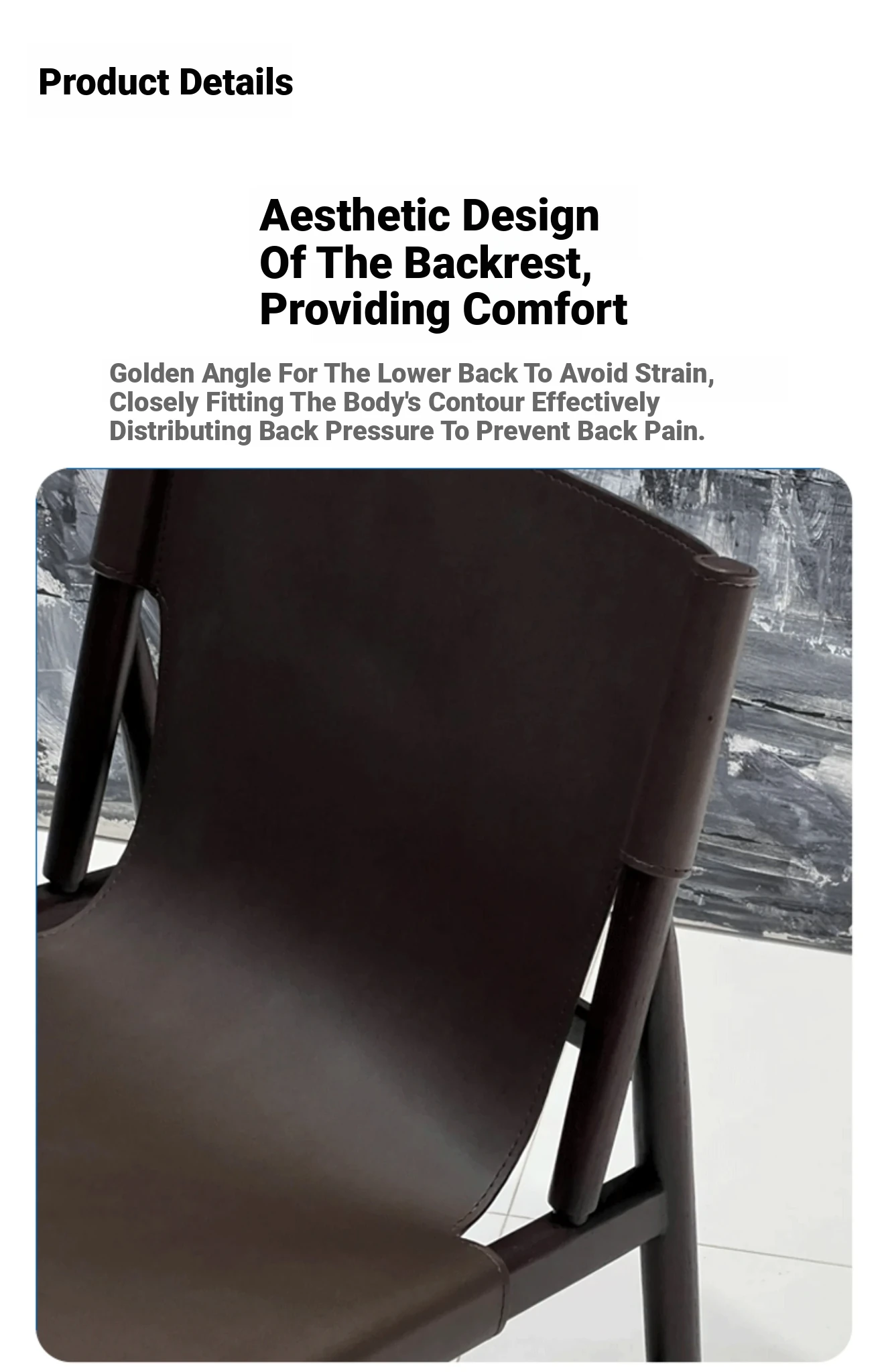 Italian Minimalist Saddle Leather Dining Chair - Voyage Designer Solid Wood Nordic Café and Hotel Chair for Home Use