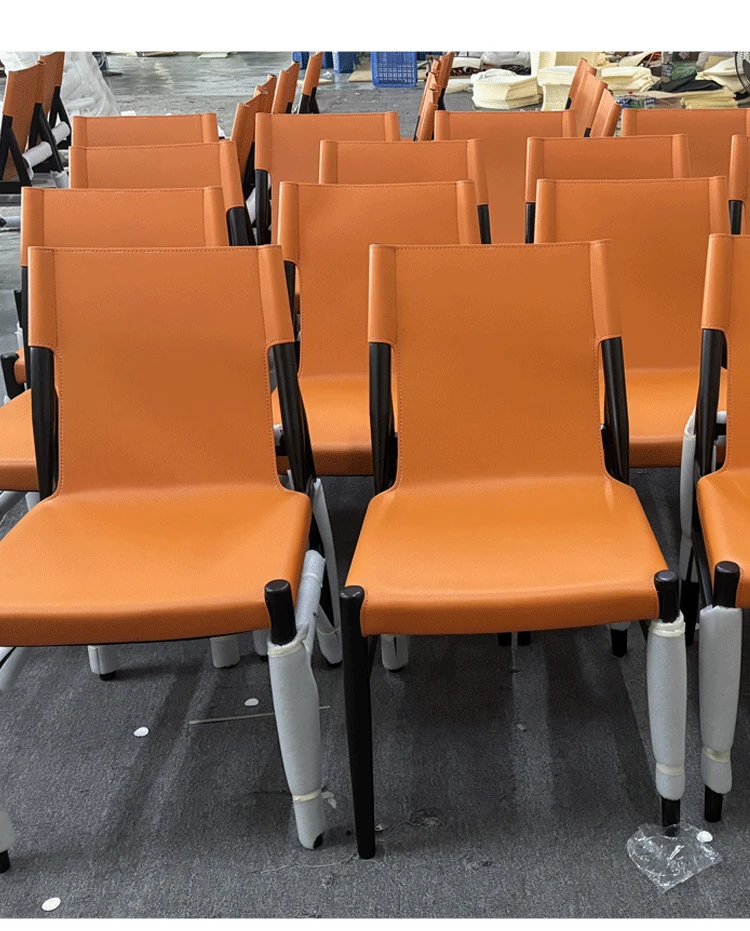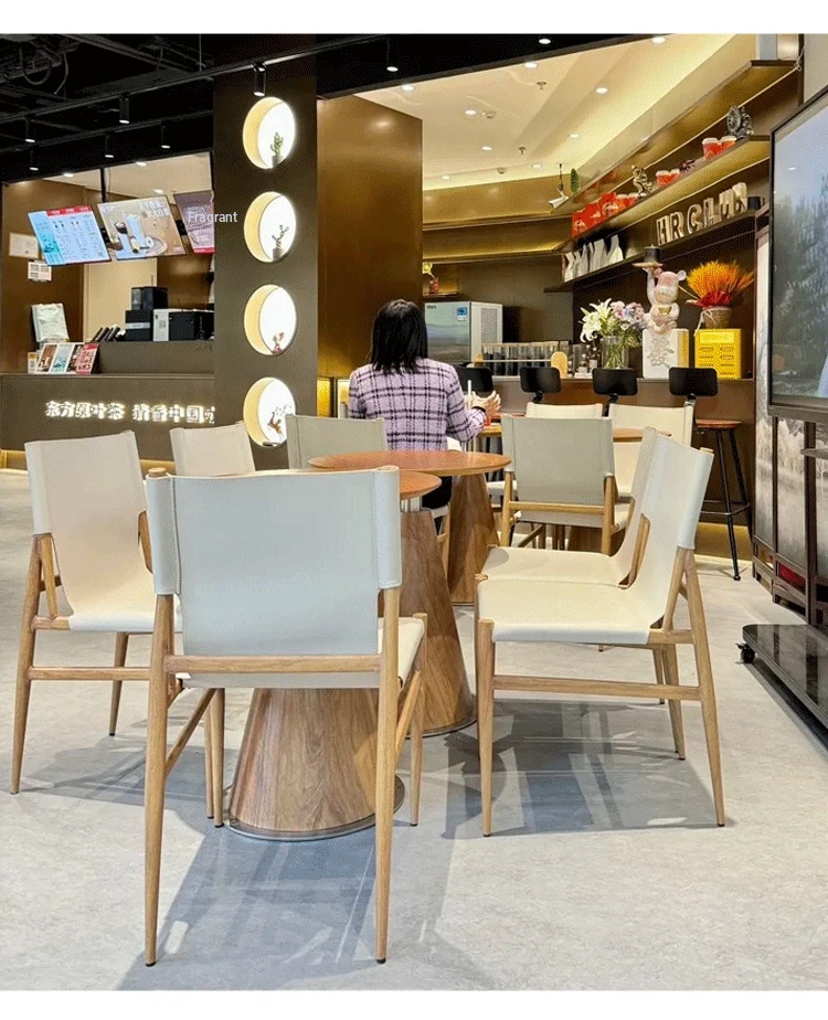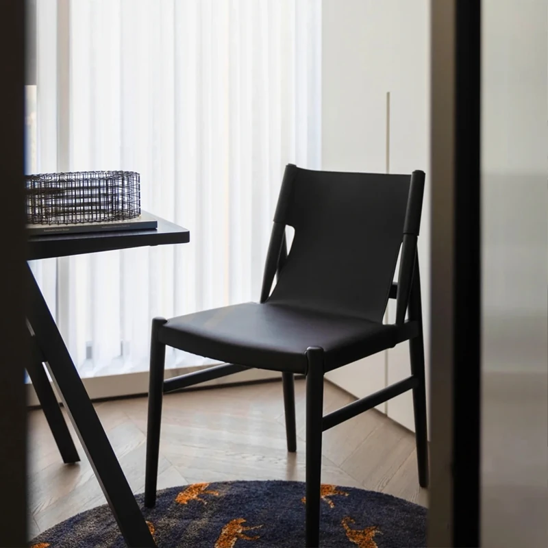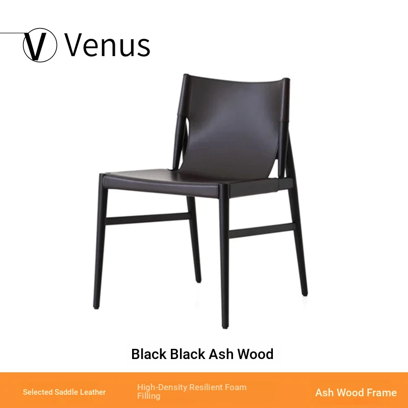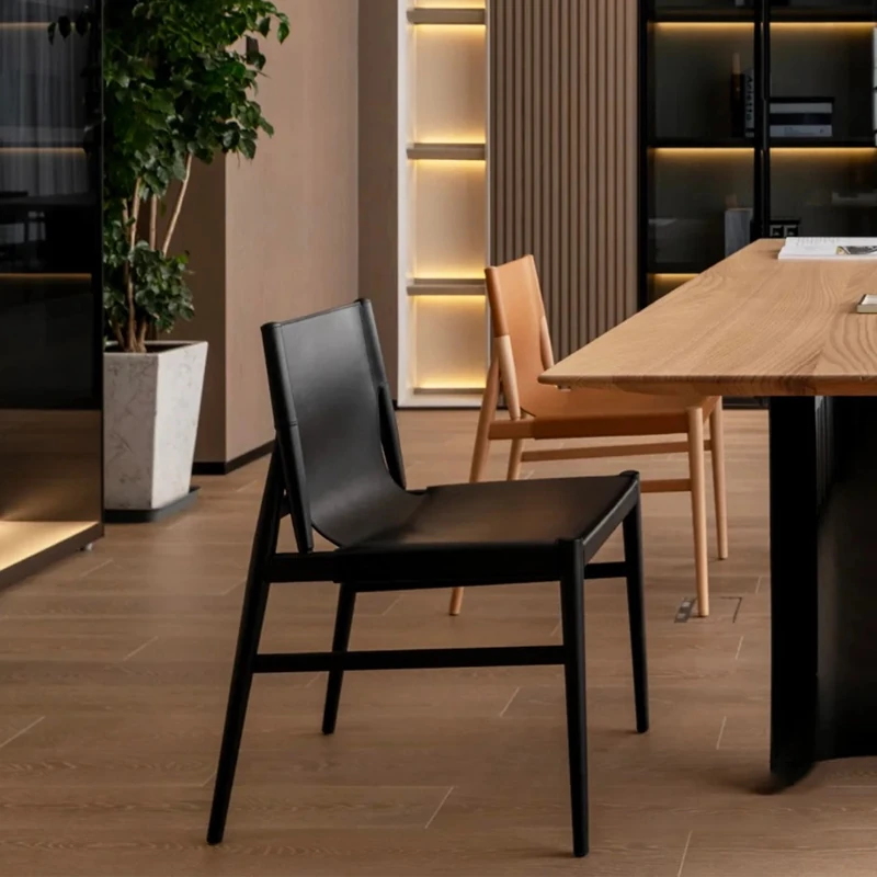 Italian Minimalist Saddle Leather Dining Chair - Voyage Designer Solid Wood Nordic Café and Hotel Chair for Home Use